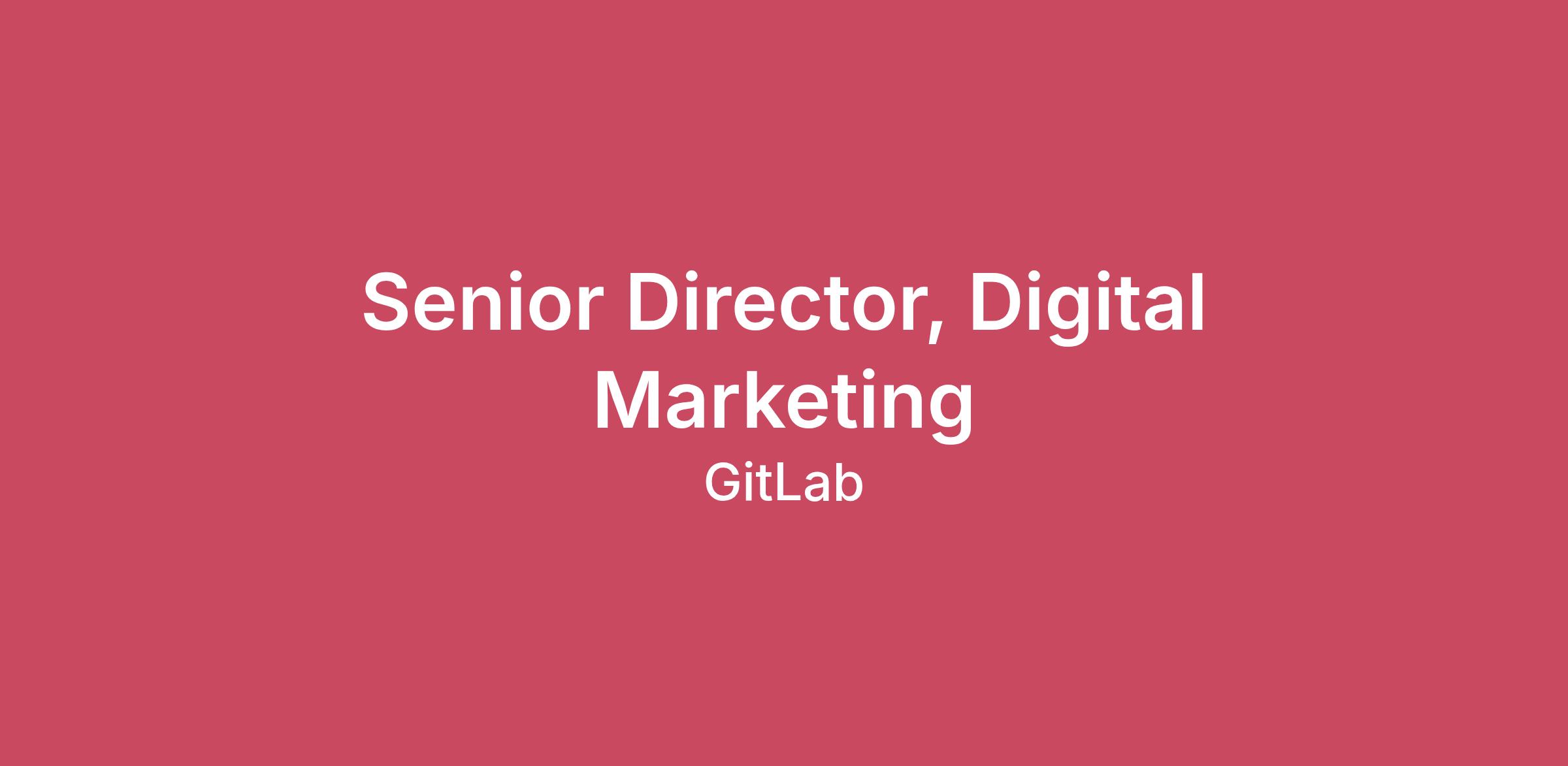 GitLab is an open-core software company that develops the most comprehensive AI-powered DevSecOps Platform, used by more than 100,000 organizations. Our mission is to enable everyone to contribute to and co-create the software that powers our world. When everyone can contribute, consumers become contributors, significantly accelerating human progress. Our platform unites teams and organizations, breaking down barriers and redefining what's possible in software development. Thanks to products like Duo Enterprise and Duo Agent Platform, customers get AI benefits at every stage of the SDLC. The same principles built into our products are reflected in how our team works: we embrace AI as a core productivity multiplier, with all team members expected to incorporate AI into their daily workflows to drive efficiency, innovation, and impact. GitLab is where careers accelerate, innovation flourishes, and every voice is valued. Our high-performance culture is driven by our values and continuous knowledge exchange, enabling our team members to reach their full potential while collaborating with industry leaders to solve complex problems. Co-create the future with us as we build technology that transforms how the world develops software.An Overview of the role As the Senior Director, Digital Marketing, you will play a critical role in GitLab's growth trajectory as we evolve from a DevSecOps platform to an intelligent orchestration platform for software teams and AI agents. You'll translate this positioning shift into digital programs that drive measurable pipeline growth while building the team's capacity to scale with clarity and speed. Reporting to the VP of Growth Marketing as a key member of the leadership team, you will own the digital growth engine across account-based marketing, integrated campaigns, and paid media. You'll have direct accountability for pipeline generation, stage velocity improvements, and expansion revenue—working in close partnership with Sales to ensure joint ownership of outcomes, not just lead handoffs. This role requires balancing strategic thinking with hands-on execution: you'll shape how GitLab competes in market, optimize significant paid media budgets through disciplined experimentation, and establish measurement frameworks that connect digital investments to business outcomes like pipeline by ICP segment, CAC/LTV economics, and attach rates for our AI capabilities. In your first year, you will scale high-impact programs that showcase the value of GitLab Duo and our platform to key buying groups (VP Engineering, CISO, Platform Engineering leaders), while establishing experimentation rigor and Sales partnership models that can scale across regions. This is a unique opportunity to serve as a strategic partner and second-in-command within the Growth Marketing organization. Some examples of our projects: Building and scaling targeted account-based marketing programs in close partnership with sales to influence pipeline and revenue in priority segments Designing and executing integrated global campaigns that combine content, paid media, email, and digital experiences to drive full-funnel impact across key industries and use cases What you'll do Own and help elevate to the next stage the digital growth engine that delivers marketing-generated pipeline across ABM, integrated campaigns, and paid media, with clear accountability for pipeline quality, stage velocity, and expansion revenue, not just top-of-funnel volume. Establish and optimize measurement frameworks that move beyond vanity metrics to business outcomes: pipeline by ICP segment, stage velocity improvements, CAC/LTV economics, attach rates for Duo and Ultimate, and incrementality of channel investments through lift tests and MMM. Build deep, trusted partnerships with Sales leadership and field teams, establishing joint accountability for target account engagement, pipeline generation, and deal acceleration. This includes weekly pipeline reviews, shared success metrics (MQAs, stage conversion, win rates), and co-developed account strategies for top-tier opportunities. Drive a culture of disciplined experimentation across all digital programs, treating tests as products with clear hypotheses, success criteria, and learning documentation. Establish experimentation governance, baseline models for incrementality measurement, and rapid iteration cycles to optimize channel mix and budget allocation. Define, track, and optimize key performance indicators (KPIs) across digital channels, including account engagement, pipeline contribution, conversion rates, and return on ad spend, using data to guide investment decisions. Oversee and mentor the ABM and campaign marketing teams, providing clear strategic direction while empowering team members to experiment, iterate, and deliver high-impact programs. Own the digital campaign lifecycle, from strategy and planning through execution, optimization, and reporting, ensuring programs are scalable, measurable, and tied to clear business outcomes. Drive the use of insights from market trends, customer behavior, and sales feedback to inform digital messaging, content strategy, and channel mix, ensuring campaigns resonate with key personas in the DevSecOps space. Collaborate with the broader marketing organization to integrate digital tactics into global launches, field programs, and partner initiatives, ensuring consistent narratives and cohesive customer experiences across touchpoints. Foster a culture of continuous improvement and innovation across all digital efforts, testing new platforms, formats, and approaches while standardizing best practices and documentation for long-term scalability. What you'll bring Deep experience building and scaling digital marketing strategies and programs in enterprise technology or SaaS, ideally in the DevSecOps space and across multiple markets. Proven ability to manage significant paid media budgets (ideally $5M+) with a track record of optim