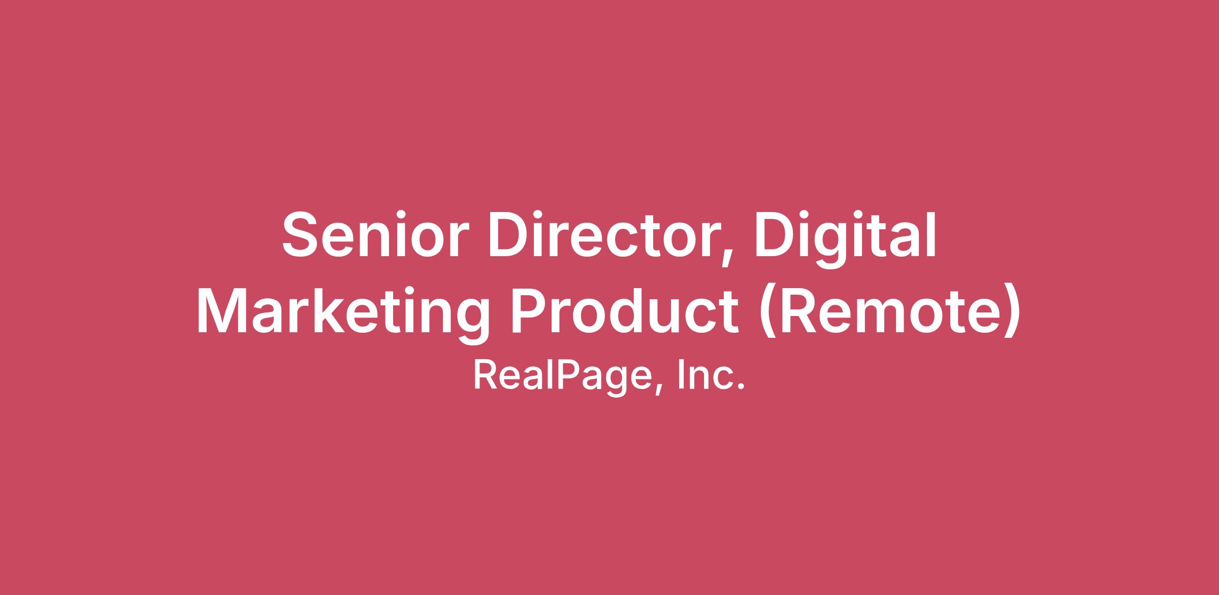 Overview The Senior Director of Product, Digital Marketing is an innovation leader with a proven track record of delivering digital marketing products and has the ambition and drive to reshape the multifamily industry. They are responsible for setting the long-term vision, strategy, and execution for a portfolio of digital marketing platforms that drive revenue growth, customer retention, and operational efficiency. This role leads and develops a high-performing product management organization while partnering closely with engineering, design, data, and go to-market leaders to deliver scalable, differentiated platforms. This leader brings deep expertise across websites and CMS, SEO and organic growth, paid media, analytics, and attribution, with a proven ability to translate market opportunities, customer needs, and emerging technologies into clear product strategies and measurable outcomes. While not directly managing service delivery, this role is accountable for the strategic direction, development, and optimization of digital marketing platforms, with a strong focus on platform scalability, performance, and long-term value creation. Responsibilities Lead, coach, and develop a team of product managers across digital marketing and website platforms, building a culture of ownership, accountability, and continuous improvement. Own product strategy and multi-year roadmaps across core domains, including: Web experience platforms and CMS SEO and organic growth Paid media and performance marketing Analytics, measurements, and attribution AI-driven capabilities and workflow automation Drive end-to-end product lifecycle execution—from discovery and prioritization through delivery, launch, and optimization—ensuring predictable outcomes and measurable business impact. Serve as a strategic thought partner and internal authority on digital marketing platform evolution, emerging technologies and market shifts, and competitive dynamics. Identify and execute opportunities to apply AI, automation, and data intelligence to improve marketing effectiveness, efficiency, and customer outcomes. Ensure products integrate seamlessly with CRM, analytics, data platforms, and marketing automation ecosystems. Establish and monitor clear success metrics tied to adoption, performance, revenue growth, customer retention, and margin efficiency. Partner cross-functionally with engineering, design, customer success, sales, marketing, and operations to align priorities and deliver cohesive, scalable solutions. Incorporate customer insights, market signals, and competitive intelligence into prioritization and roadmap decisions. Ensure Product platforms and capabilities meet regulatory, privacy, security, and accessibility standards, including ADA and WCAG compliance. Communicate product vision, progress, tradeoffs, and outcomes clearly to executive leadership and key stakeholders. Make Data-informed decisions and clear tradeoff management—including difficult prioritization and investment tradeoffs—while leading with empathy, transparency, and respect. Qualifications Bachelor's degree in Marketing, Business, Computer Science, or a related field, or equivalent practical experience. 10+ years of product management experience, with significant focus on digital marketing platforms, websites, and growth technologies. 5+ years of experience leading and developing product managers at the director or senior leadership level. Demonstrated success owning product strategy and execution for complex, multi product platforms serving scaled customer bases. Strong technical fluency across web technologies, analytics, data platforms, APIs, and modern SaaS architectures. Hands-on experience with SEO, paid media, CMS platforms, CRM systems, analytics tools, and marketing automation. Proven ability to influence cross-functional partners and executive stakeholders without direct authority. Experience operating in fast-paced, evolving environments while maintaining strategic clarity and execution discipline. Knowledge, Skills, and Abilities Strategic, systems-level thinker with deep understanding of digital marketing ecosystems and platform economics. Strong business acumen, with the ability to connect product decisions to revenue growth, retention, and scalability and operational efficiency. Data-driven decision-maker with the ability to define success metrics, interpret performance signals, and drive continuous improvement. Expertise in modern product management practices, including discovery, prioritization, roadmap planning, and outcome-based execution. Solid understanding of UX/UI principles and customer-centered product design. Strong people leadership skills, including coaching, feedback, and talent development. Excellent written and verbal communication skills, with experience presenting complex product strategies to executive audiences. High degree of adaptability, resilience, and curiosity, with a continuous-learning mindset Physical Demands and Working Conditions While performing the duties of this job, the employee is occasionally required to stand, walk, sit, use hands to finger, handle or feel objects, tools or controls, reach with hands and arms, climb stairs, talk or hear. The employee must have the ability to operate a personal computer and express or exchange ideas by means of the spoken word. May be required to sit and/or stand for long periods of time. Specific vision abilities required by this job include close vision, distance vision, color vision, peripheral vision, depth perception, and ability to adjust focus. May be required to lift or move 10+ pounds. SALARY AND BENEFITS RealPage provides a competitive salary package along with a comprehensive benefit plan that includes: Health, dental, and vision insurance. Retirement savings plan with company match. Paid time off and holidays. Professional development opportunities. Performance-based bonus based on position. Compensation may vary depending on your location,