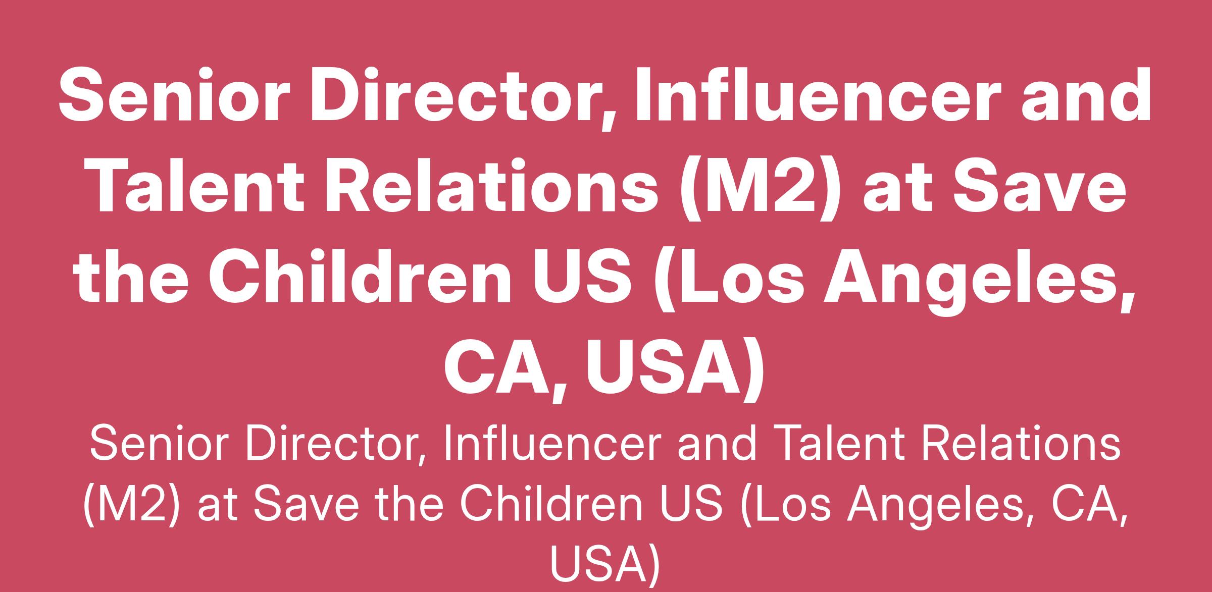 Senior Director, Influencer and Talent Relations (M2) at Save the Children US (Los Angeles, CA, USA)
