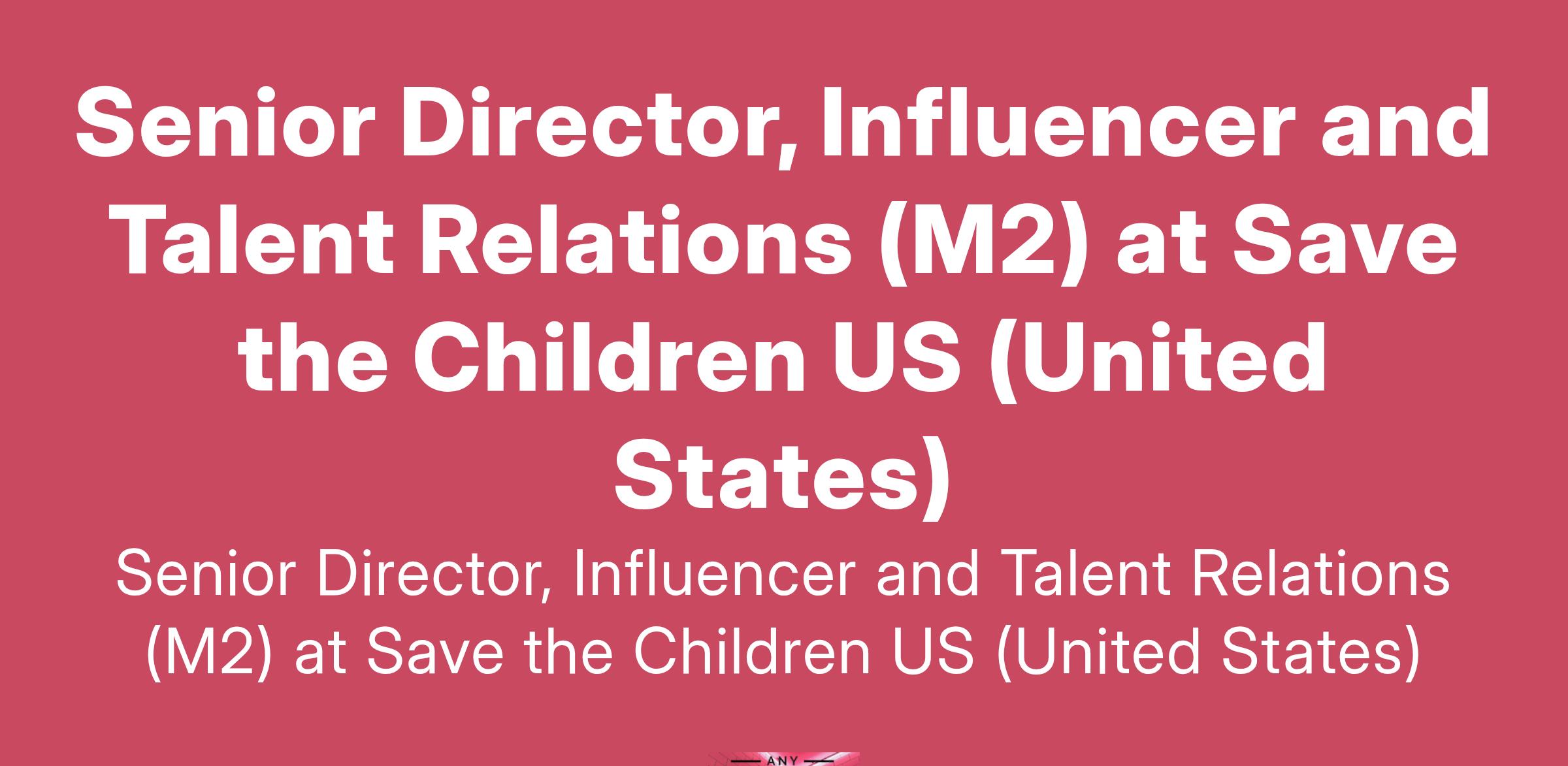 Senior Director, Influencer and Talent Relations (M2) at Save the Children US (United States)