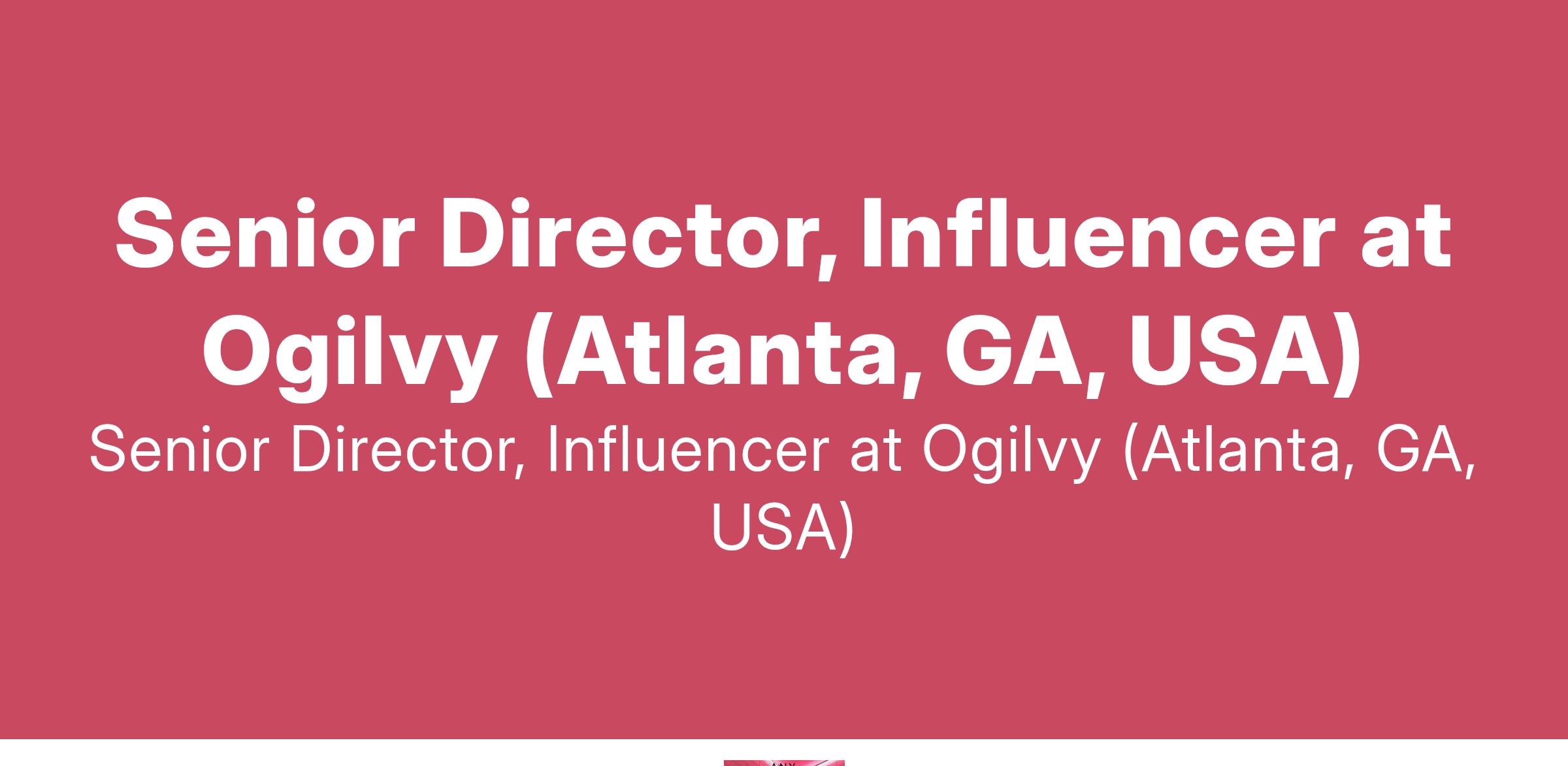 Senior Director, Influencer at Ogilvy (Atlanta, GA, USA)