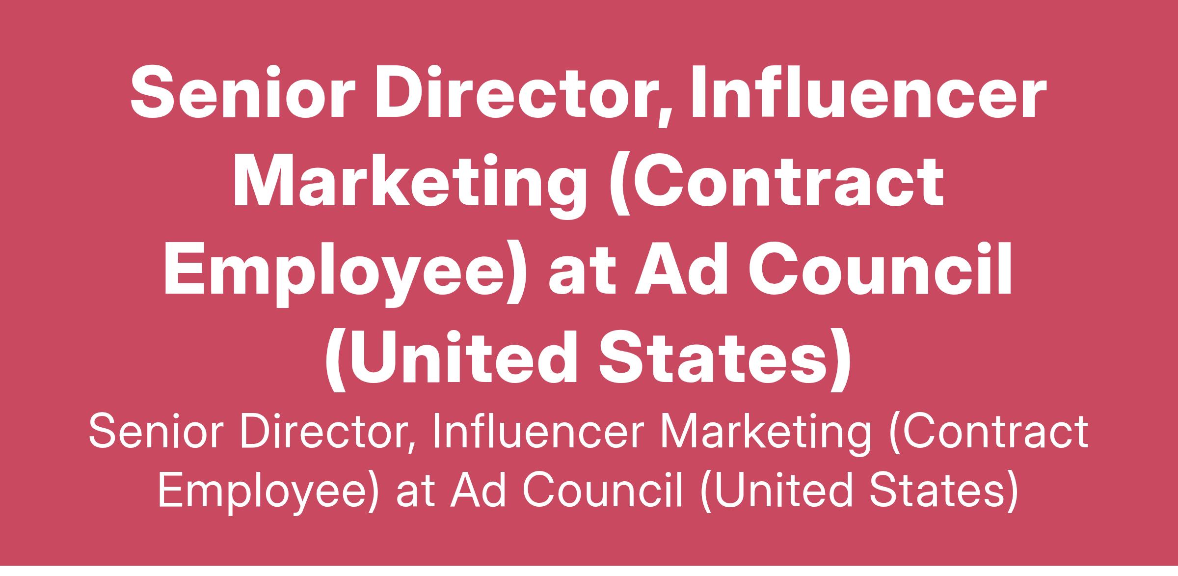 Senior Director, Influencer Marketing (Contract Employee) at Ad Council (United States)