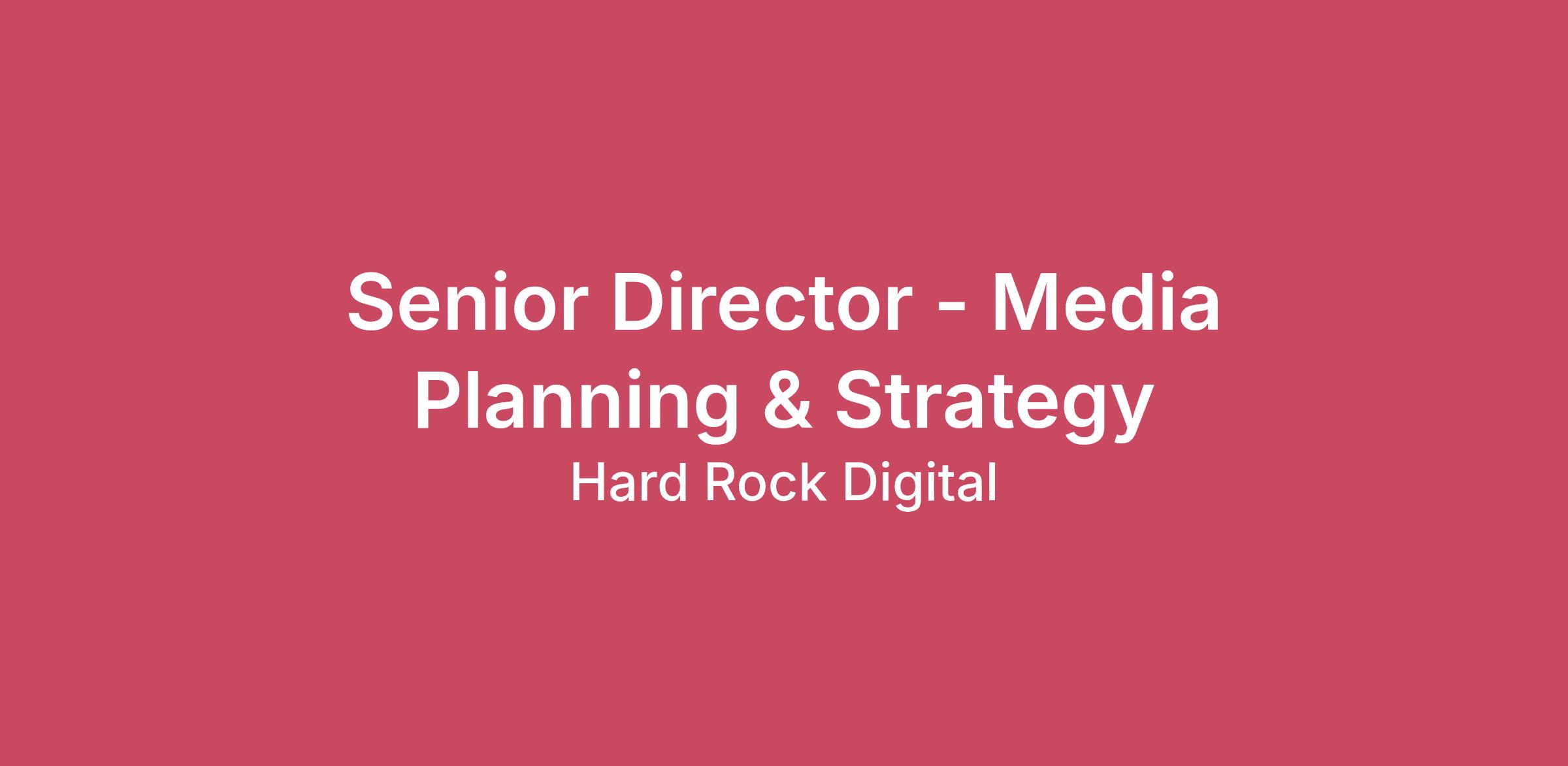 Hard Rock Digital is seeking a Senior Director - Media Strategy & Planning to lead the development, execution, and evolution of our media investment strategy across our Sports Betting and Online Casino portfolio. This role will own the full media activation strategy for major brand campaigns, ensuring media plans are thoughtfully designed, rigorously tested, and tightly integrated with brand, creative, and performance objectives.