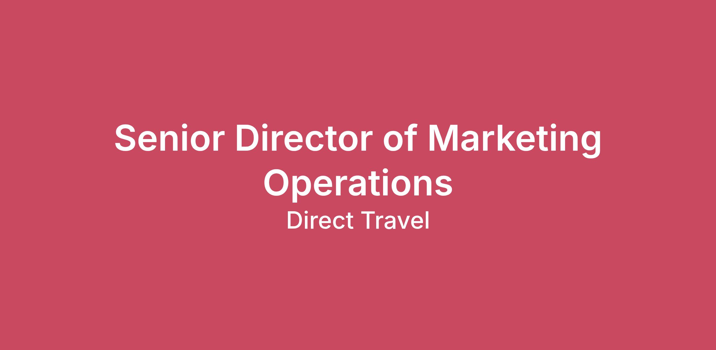 We are seeking a transformational Senior Director of Marketing Operations to architect and scale our global marketing systems infrastructure as we grow towards a billion-dollar enterprise. This is a strategic leadership position responsible for global systems integration, lifecycle governance, data architecture, and building the marketing technology foundation for scale. This role sits at the intersection of Marketing, Sales, and Data, and will be responsible for building a scalable, globally integrated marketing technology ecosystem. What You Will Own Global Integration & Multi-Instance Consolidation Lead integration of global HubSpot instance into enterprise Marketo environment Consolidate multi-region marketing automation system into a unified architecture Define global governance framework for campaigns, lifecycle stages, routing, and reporting Establish scalable processes for multi-product, multi-region operations Marketing Automation & Platform Leadership Own enterprise Marketo instance, including architecture, governance, performance, and optimization Ensure scalable campaign execution infrastructure for a database expected to grow from 100K to 1M+ contacts Oversee data hygiene, segmentation, suppression, and compliance standards (GDPR, CAN-SPAM, etc.) Martech Architecture & Integrations Architect and maintain integrations between Marketo, Salesforce, and broader marketing technology stack Evaluate, select, and implement marketing technologies aligned to revenue objectives Partner with GTM Ops, IT, and Data teams to ensure system integrity and performance Build documentation, governance, and reporting frameworks Build scalable integrations to support 4x ARR growth Revenue Lifecycle Governance Design and govern global lead lifecycle model Own routing logic, SLAs, and handoffs between Marketing and Sales Standardize attribution framework aligned to revenue reporting Drive pipeline integrity and marketing contribution visibility Data Architecture & Reporting Define marketing data model in alignment with Salesforce and enterprise data warehouse Establish scalable reporting of top of funnel performance Ensure data accuracy, compliance, and audit readiness Team Leadership & Buildout Manage a Marketo Specialist Develop roadmap to scale marketing operations team as company grows Recruit and develop future operations talent Required Experience 15+ years in Marketing Operations, Revenue Operations, or Marketing Technology leadership Deep expertise in enterprise Marketo architecture and administration Proven experience managing global marketing automation team Salesforce integration governance experience Experience scaling marketing databases from six to seven figures Demonstrated success building lifecycle and routing frameworks Experience with evaluating, implementing, and maintaining MarTech systems M&A integration experience strongly preferred Your Benefits Onboard In addition to Medical, Dental, and Vision benefits, Direct Travel/ATPI offers a Total Rewards Package including Retirement Plans, Wellness, Recognition, Sustainability, DE&I, and Mental Health support. Embark on the next step in your career journey with Direct Travel! Direct Travel/ATPI is one of the fastest‑growing TMCs in the world. By leveraging both the expertise of its people and innovative technology solutions, Direct Travel/ATPI enables clients to derive the greatest value from their travel program in terms of superior service, progressive technologies, and significant cost savings. Direct Travel/ATPI has offices globally and is currently ranked among the top providers on Travel Weekly’s Power List. For more information, visit https://www.dt.com/about-us/careers/. Direct Travel/ATPI is an EOE/AA/Veteran/People with Disabilities employer. If you're ready to chart a new course and advance your career with the valuable moments and travel experiences that await, we welcome you to submit your resume for consideration at Direct Travel/ATPI. #LI-DNP