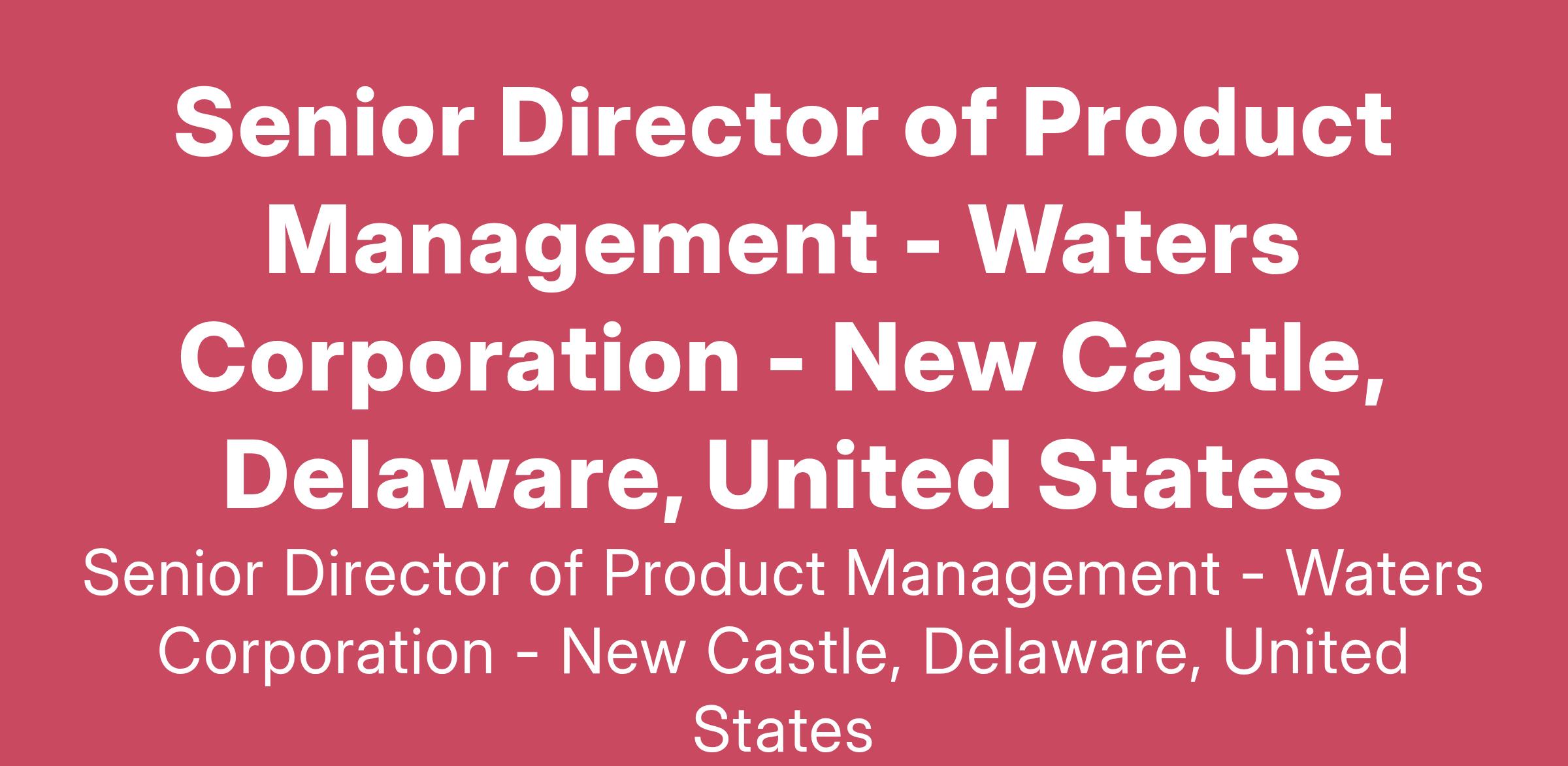 We are looking for a strategic thinker, strong executor, and inspiring leader to fill an immediate vacancy for a Senior Director of Product Management. Reporting to Vice President of R&D and Product Solutions and as a member of the TA Instruments Business Committee, this individual will provide senior-level leadership in the development and implementation of the worldwide product strategies and product management roadmaps for both new and existing materials characterization product lines. This position will be located in the New Castle, Delaware facility.