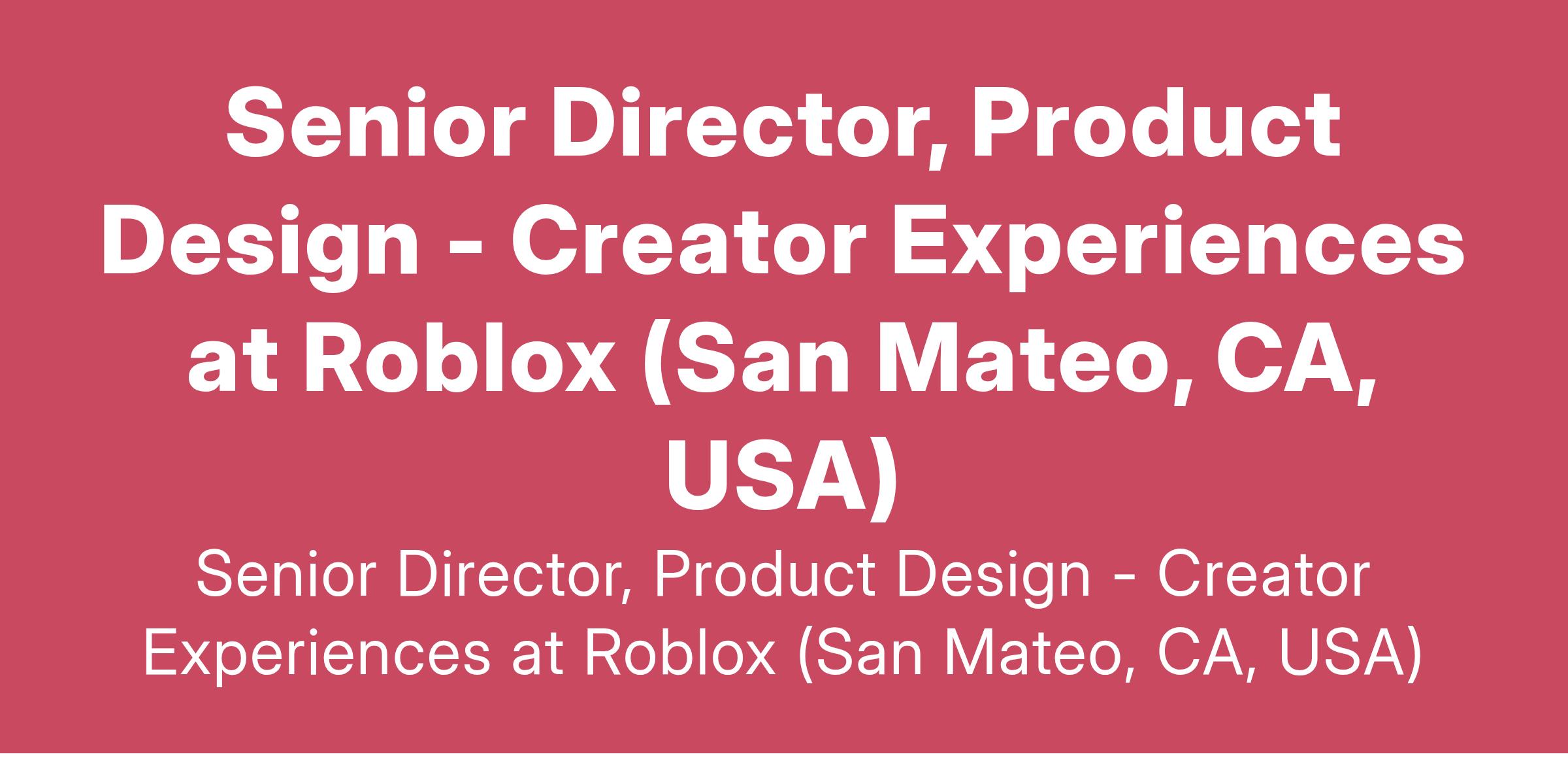Senior Director, Product Design - Creator Experiences at Roblox (San Mateo, CA, USA)