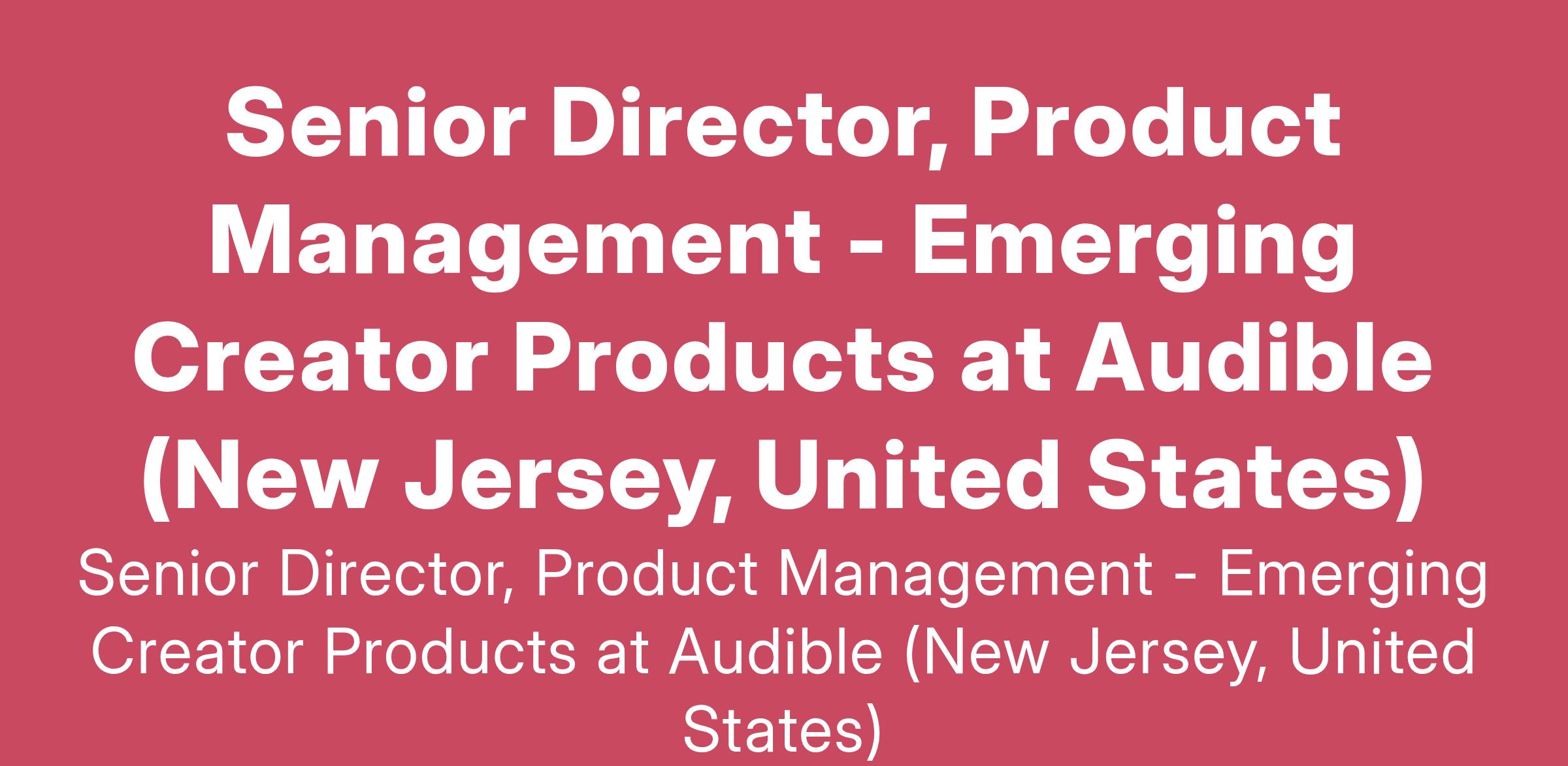 Senior Director, Product Management - Emerging Creator Products at Audible (New Jersey, United States)