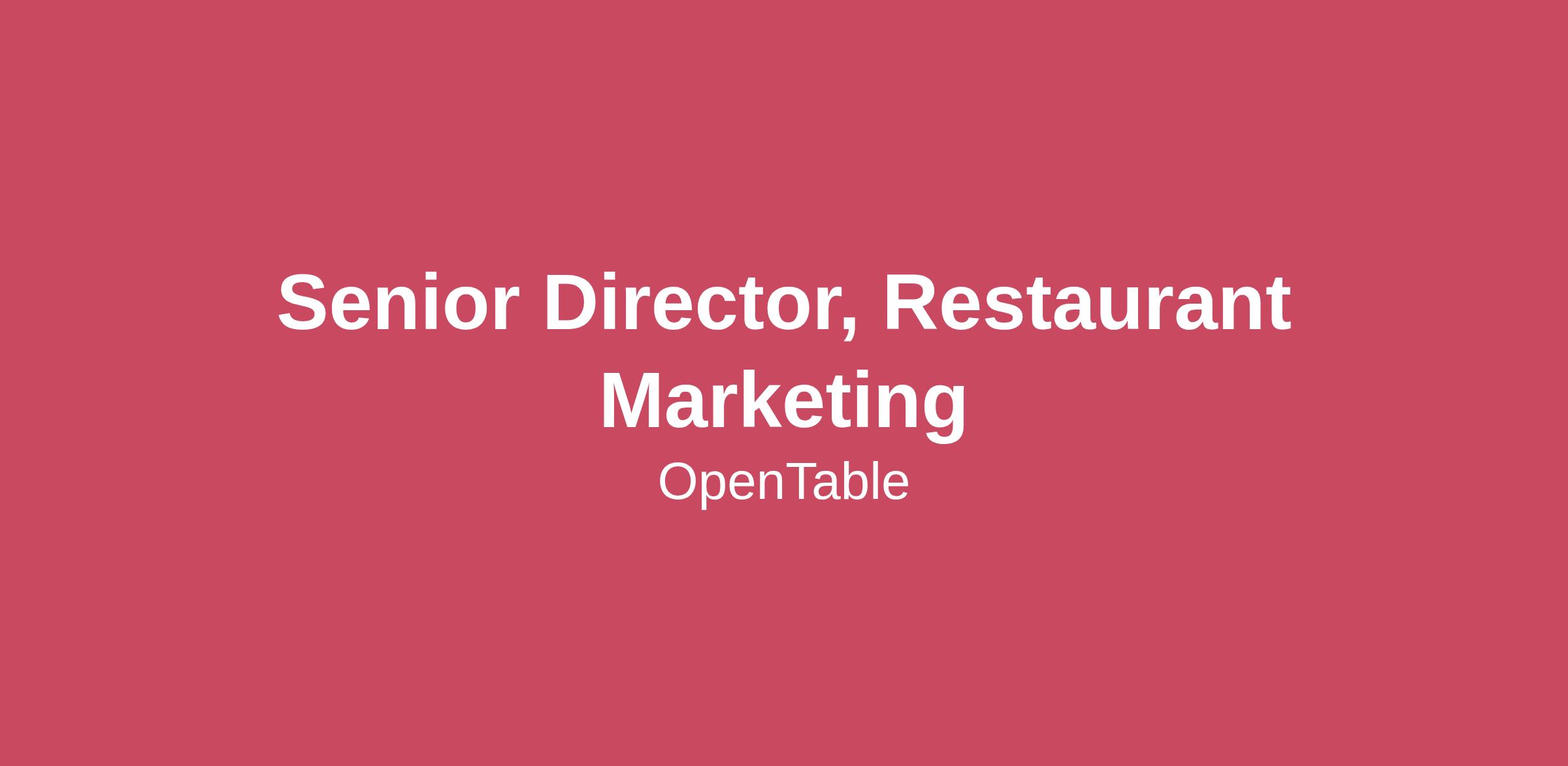 Senior Director, Restaurant Marketing