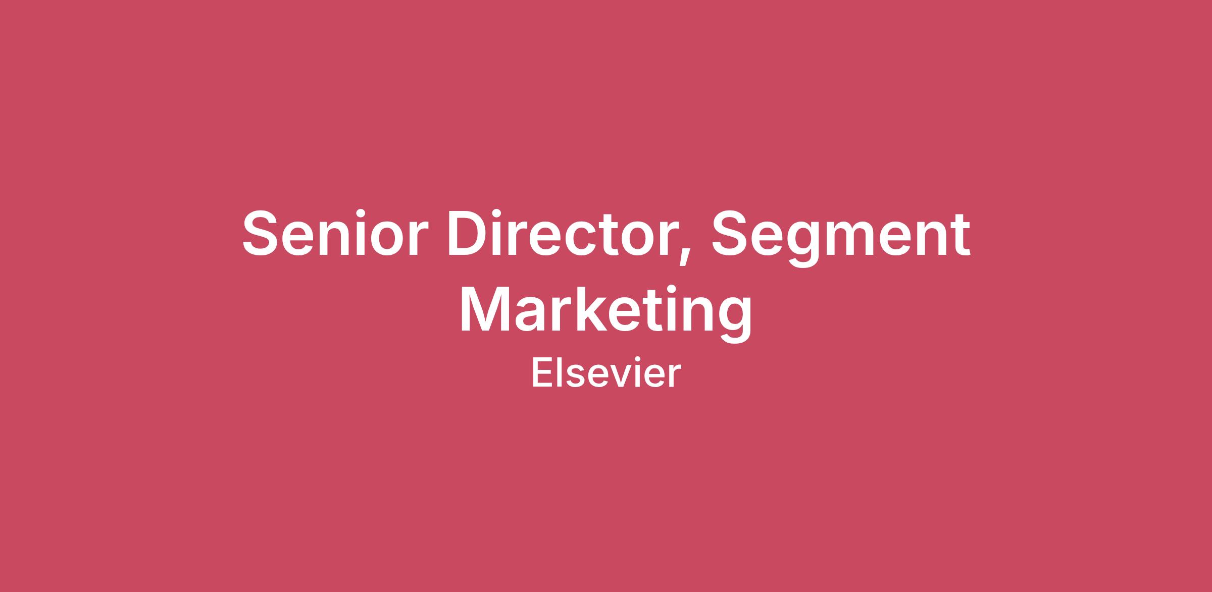 About our Team A global leader in information and analytics, we help researchers and healthcare professionals advance science and improve health outcomes for the benefit of society. Building on our publishing heritage, we combine quality information and vast data sets with analytics to support visionary science and research, health education and interactive learning, as well as exceptional healthcare and clinical practice. At Elsevier, your work contributes to the world's grand challenges and a more sustainable future. We harness innovative technologies to support science and healthcare to partner for a better world.About the RoleThe Senior Director of Segment Marketing is a strategic leadership role responsible for driving growth within a priority customer segment. Reporting to the VP, Academic Leader and Funder Audience Marketing, this role defines the global segment marketing vision and ensures execution aligns with business and revenue goals.You will lead the development and execution of global segment growth strategies that directly impact marketing-sourced bookings and overall sales growth. Leading a dedicated team, you will translate market insights and positioning into actionable go-to-market plans, delivering compelling, persona-driven messaging, campaigns, and sales enablement that support the full buying journey.This role requires a seasoned B2B marketing leader with strong executive presence, a collaborative mindset, and a proven track record of delivering results in a global, cross-functional environment.ResponsibilitiesDrive segment growth in support of A&G’s growth ambitionDefine and execute global segment marketing and GTM strategiesTranslate positioning and insights into high-impact programs, campaigns, and sales enablementOwn persona-based messaging, value propositions, and sales enablement frameworksPrioritize segment opportunities and align resources to highest-growth initiativesPartner closely with Product, Sales, Field Marketing, Strategy, and CommsLead, develop, and inspire a high-performing segment marketing teamRequirements 10+ years of B2B marketing experience, including 5+ years in senior leadershipProven success driving marketing-sourced pipeline and bookingsExperience enabling sales teams with clear messaging, assets, and GTM guidanceDeep expertise in segmentation, persona-based marketing, and complex buyer journeysStrong cross-functional leadership and executive communication skillsWork in a way that works for youWe promote a healthy work/life balance across the organisation. We offer an appealing working prospect for our people. With numerous wellbeing initiatives, shared parental leave, study assistance and sabbaticals, we will help you meet your immediate responsibilities and your long-term goals.Working for you: We know that your wellbeing and happiness are key to a long and successful career. These are some of the benefits we are delighted to offer: Generous holiday allowance with the option to buy additional days Health screening, eye care vouchers and private medical benefits Wellbeing programs Life assurance Access to a competitive contributory pension scheme Save As You Earn share option scheme Travel Season ticket loan Electric Vehicle Scheme Optional Dental Insurance Maternity, paternity and shared parental leave Employee Assistance Programme Access to emergency care for both the elderly and children RECARES days, giving you time to support the charities and causes that matter to you Access to employee resource groups with dedicated time to volunteer Access to extensive learning and development resources Access to employee discounts scheme via Perks at Work About the BusinessA global leader in information and analytics, we help researchers and healthcare professionals advance science and improve health outcomes for the benefit of society. Building on our publishing heritage, we combine quality information and vast data sets with analytics to support visionary science and research, health education and interactive learning, as well as exceptional healthcare and clinical practice. At Elsevier, your work contributes to the world's grand challenges and a more sustainable future. We harness innovative technologies to support science and healthcare to partner for a better world. If performed in New York, the base pay range is $115,400 - $192,200.If performed in New York City, the base pay range is $120,600 - $200,900.If performed in Rochester, NY, the base pay range is $99,700 - $166,000.We know your well-being and happiness are key to a long and successful career. We are delighted to offer country specific benefits. Click here to access benefits specific to your location.We are committed to providing a fair and accessible hiring process. If you have a disability or other need that requires accommodation or adjustment, please let us know by completing our Applicant Request Support Form or please contact 1-855-833-5120.Criminals may pose as recruiters asking for money or personal information. We never request money or banking details from job applicants. Learn more about spotting and avoiding scams here.Please read our Candidate Privacy Policy.We are an equal opportunity employer: qualified applicants are considered for and treated during employment without regard to race, color, creed, religion, sex, national origin, citizenship status, disability status, protected veteran status, age, marital status, sexual orientation, gender identity, genetic information, or any other characteristic protected by law.USA Job Seekers:EEO Know Your Rights.