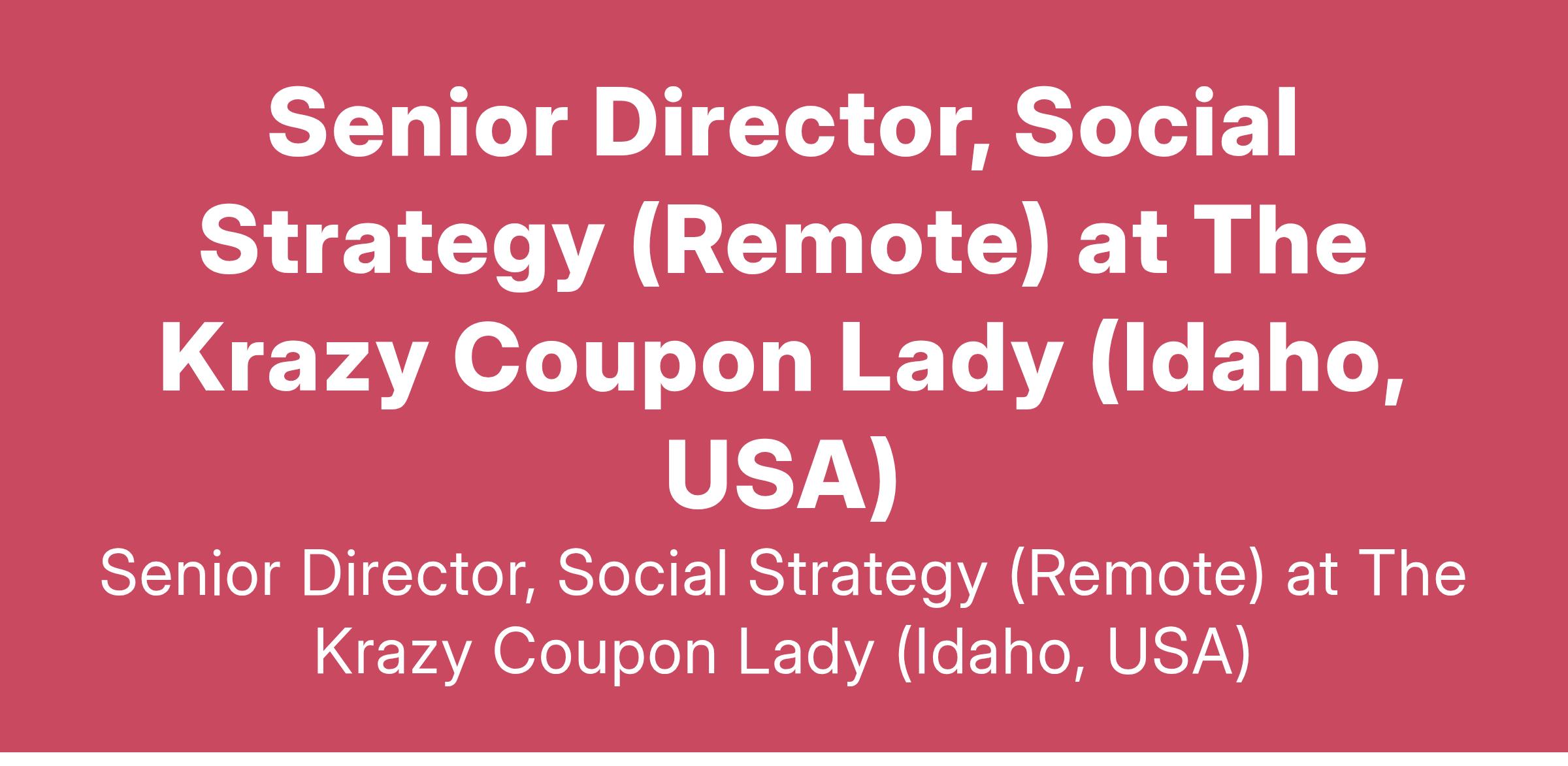 Senior Director, Social Strategy (Remote) at The Krazy Coupon Lady (Idaho, USA)