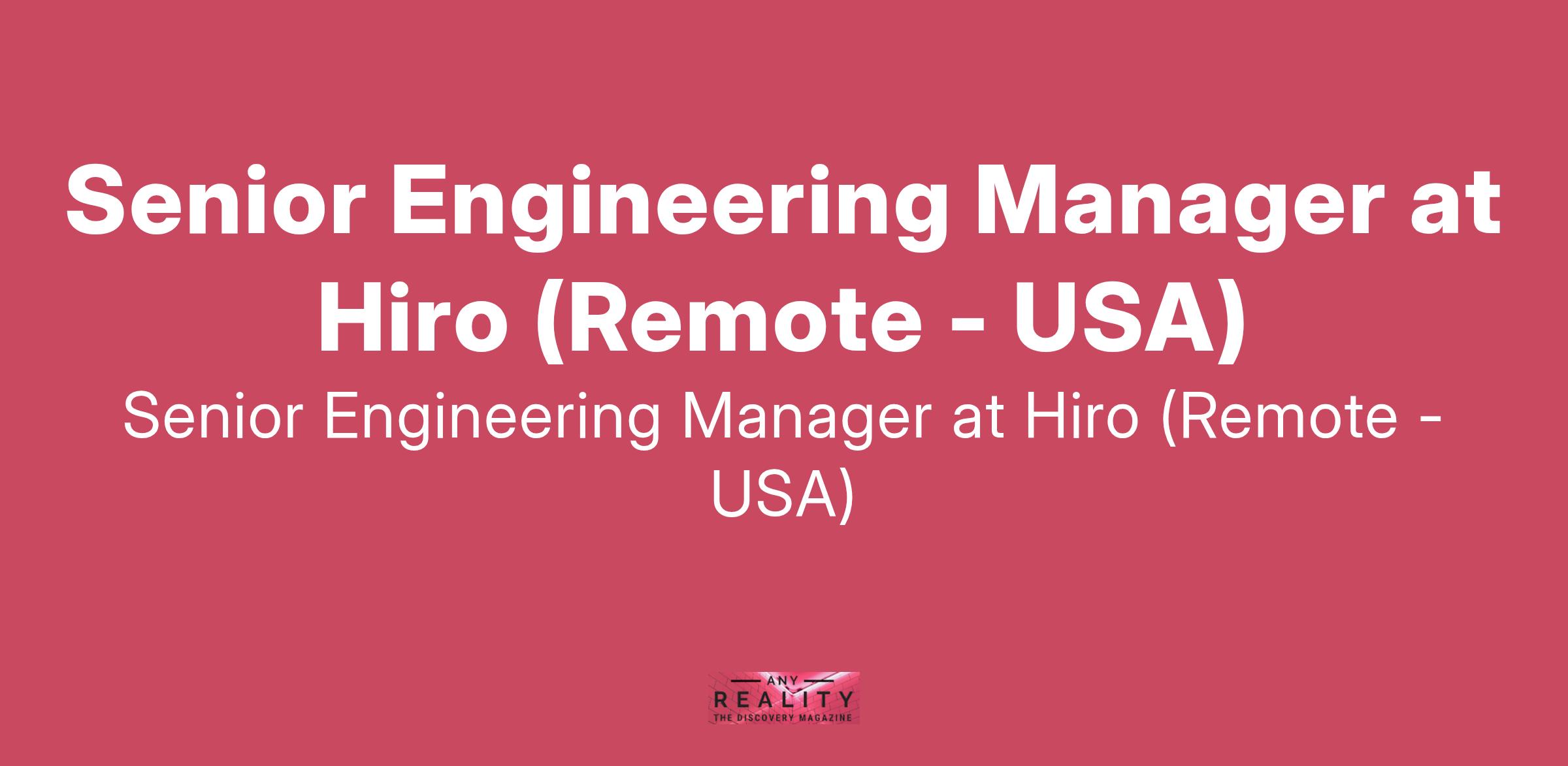 Senior Engineering Manager at Hiro (Remote - USA)