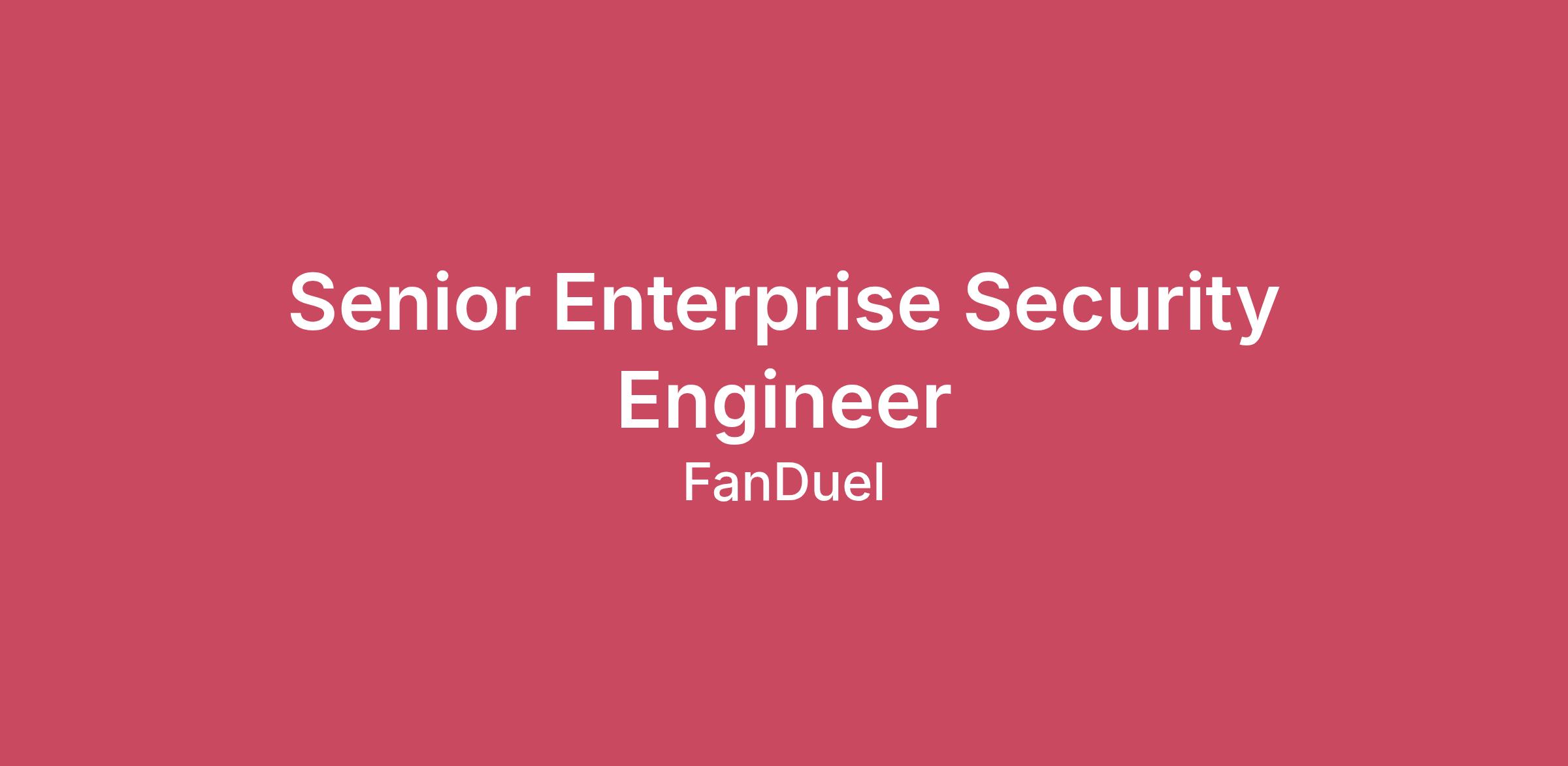 We're seeking an experienced Senior Security Engineer with a passion for developing enterprise security controls strategies, making opinionated security posture strategies, and leading implementation. Enabling capabilities at FanDuel scale takes someone who has breadth and depth across multiple security domains, driving risk reduction while balancing enablement and user experience. You will report to the Senior Manager, Enterprise Security Engineering and be central in solving a range of security challenges.