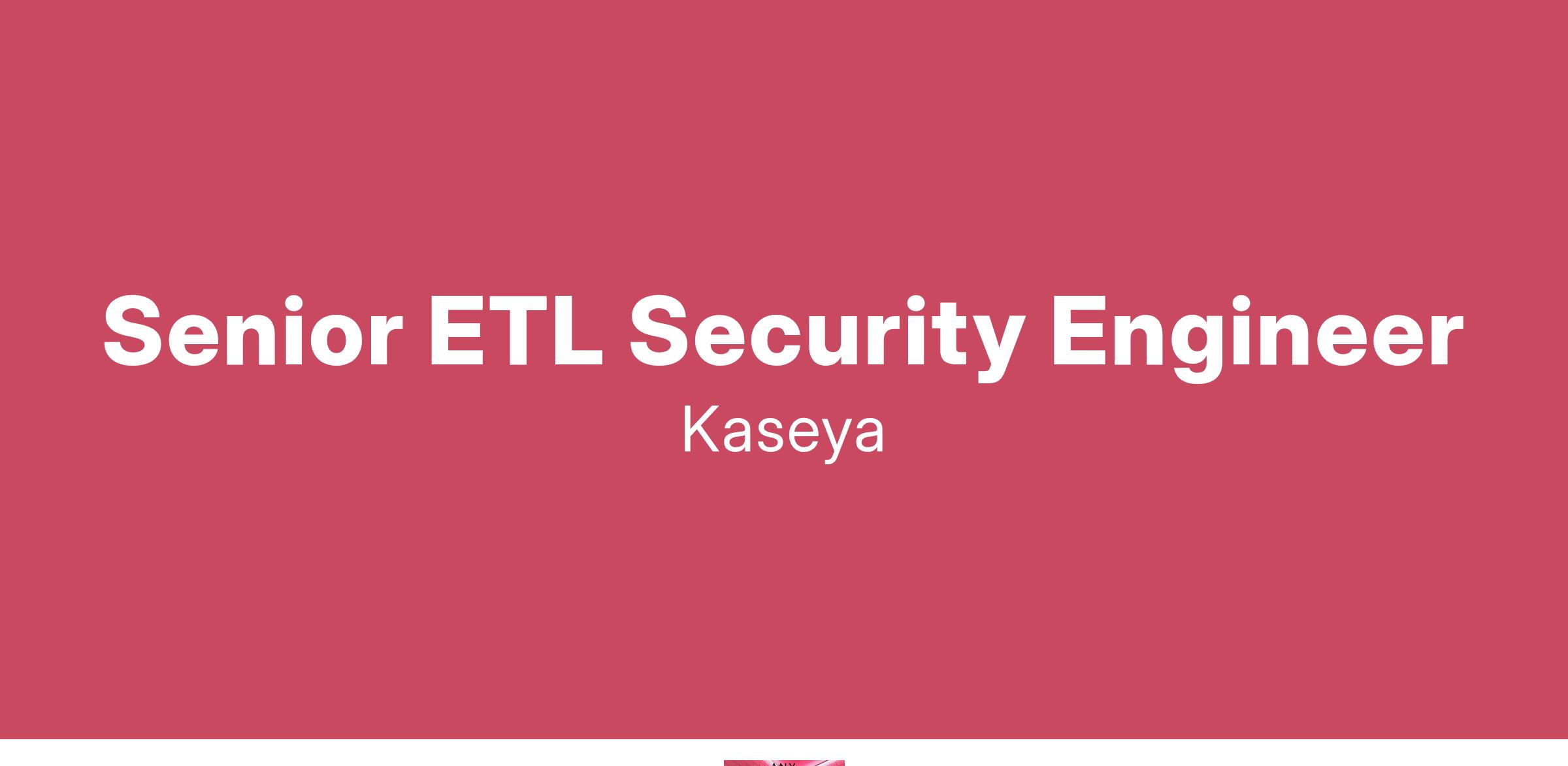 As a cutting-edge technology company, we are searching for a talented Senior ETL Security Engineer to join our exceptional team. Kaseya is a leader in delivering groundbreaking solutions that empower businesses to thrive in the digital age. You should be a technical contributor who will build and maintain infrastructure focused security solutions. In this position, you will be responsible for planning, coordinating, and executing initiatives that improve the security posture of Kaseya’s infrastructure. You will be responsible for designing, implementing, and maintaining robust security measures, defending against potential threats that could disrupt operations or compromise sensitive information.