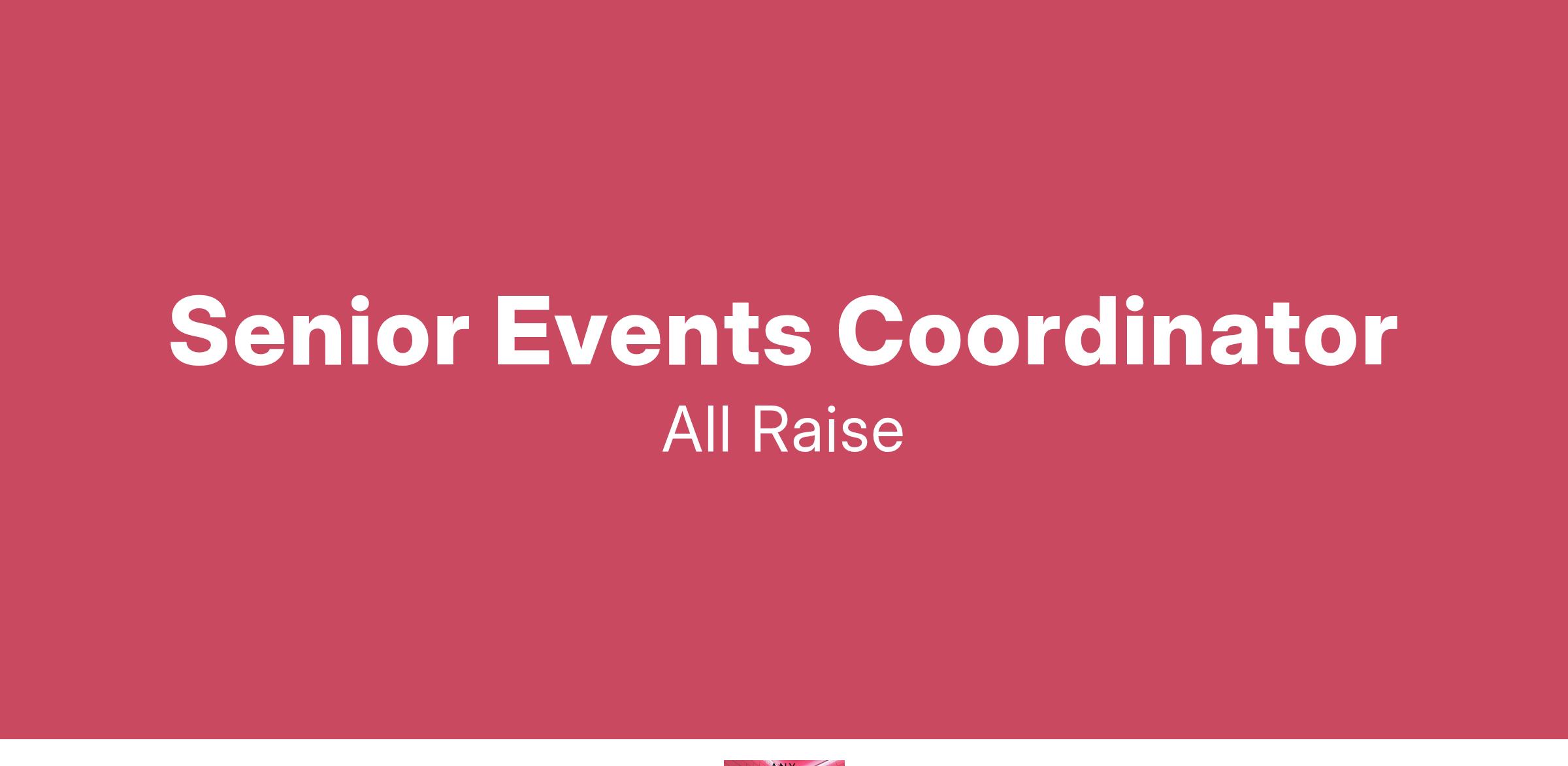 All Raise seeks a dynamic and highly organized Senior Events Coordinator to support the creation and execution of All Raise events and community activation work. The ideal candidate will demonstrate the ability to coordinate complex, high-stakes professional events. Project management, a collaborative nature, creative problem-solving, and attention to detail are central to this role. The primary responsibilities of this position are centered around our HQ Flagship events, including the annual All Raise VC Summit, but will work closely with our Community and Program teams to support the delivery of programs and events to our broader community.