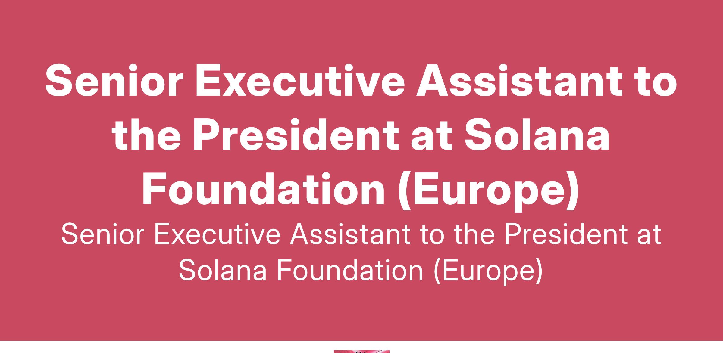 Senior Executive Assistant to the President at Solana Foundation (Europe)