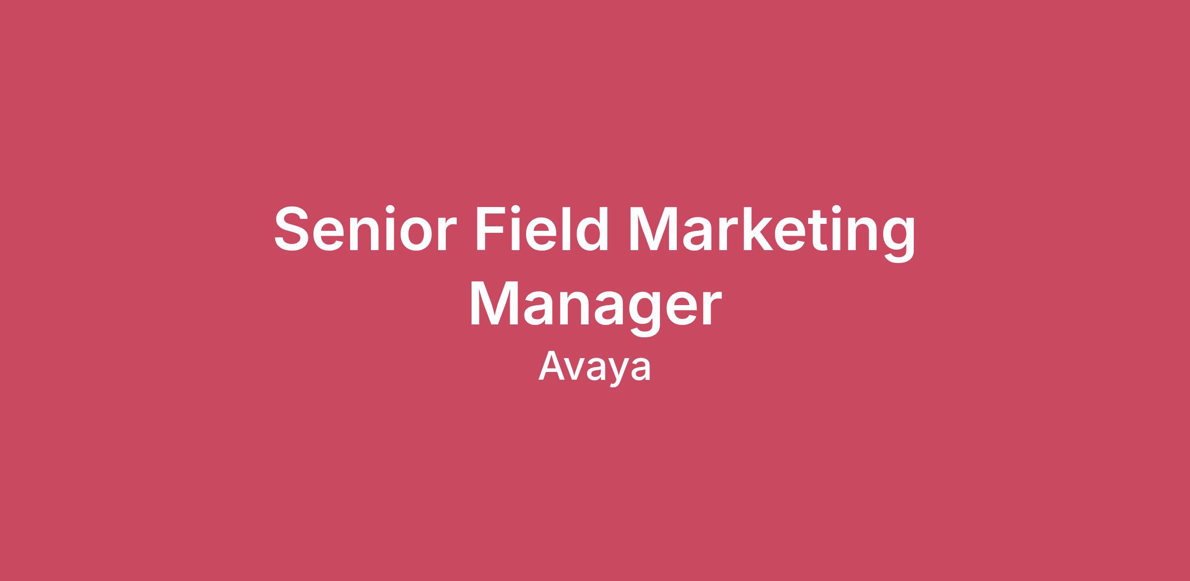 About Avaya Avaya is an enterprise software leader that helps the world’s largest organizations and government agencies forge unbreakable connections. The Avaya Infinity™ platform unifies fragmented customer experiences, connecting the channels, insights, technologies, and workflows that together create enduring customer and employee relationships. We believe success is built through strong connections – with each other, with our work, and with our mission. At Avaya, you'll find a community that values your contributions and supports your growth every step of the way. Learn more at https://www.avaya.com Description The Senior Field Marketing Manager is responsible for driving demand generation, pipeline acceleration, and market engagement in support of regional sales objectives. This role develops and executes integrated marketing programs that increase brand awareness, generate qualified pipeline, and support revenue growth. Working closely with sales leadership, channel partners, and cross-functional marketing teams, the Senior Field Marketing Manager ensures marketing initiatives align with business priorities and deliver measurable pipeline contribution and return on investment. Demand Generation & Pipeline Growth Develop and execute field marketing programs that generate demand and accelerate sales pipeline. Partner closely with sales leaders and account teams to identify pipeline gaps and deploy targeted marketing initiatives. Plan and manage integrated campaigns including digital marketing, webinars, account-based marketing (ABM), and field events. Track and report campaign performance, pipeline contribution, and ROI. Field Marketing Execution Adapt and execute global marketing initiatives to align with local market opportunities and customer needs. Deliver multi-channel campaigns designed to drive engagement across priority industry verticals. Support strategic accounts with targeted account-based marketing initiatives. Partner Marketing Develop joint marketing programs with channel partners, distributors, and system integrators. Manage co-funded partner marketing activities and track performance outcomes. Enable partners with messaging, campaign tools, and marketing support. Events & Industry Engagement Lead execution of field events, executive roundtables, industry forums, and sponsorships. Manage event planning, vendor relationships, logistics, and post-event pipeline follow-up. Cross-Functional Collaboration Collaborate with Product Marketing, Global Campaigns, Communications, and Sales Operations teams. Ensure consistent positioning of solutions across all marketing touchpoints. Provide market insights and feedback to support marketing strategy and program development. Budget & Performance Management Manage field marketing budget to maximize program effectiveness and return on investment. Operate with strong business judgment to identify new opportunities that support revenue growth.. Requirements 7–10 years of experience in B2B marketing, demand generation, or field marketing roles. Bachelor’s degree or equivalent combination of education and experience. Proven ability to develop and execute integrated marketing programs that drive pipeline and support revenue growth. Strong collaboration skills with sales teams and cross-functional stakeholders. Preferred Experience in Unified Communications, Contact Center technologies, or Cloud transformation solutions Familiarity with CRM and marketing automation platforms such as Salesforce. Experience supporting multiple markets or regions. The pay range for this opportunity is from $126,00 to $160,000 + performance-related bonus + benefits. This range represents the anticipated low and high end of the salary for this position. This role is also eligible to receive an annual bonus that aligns with individual and company performance. Actual salaries will vary and are based on factors such as a candidate’s qualifications, skills, competencies. Footer Applicants must be currently authorized to work in the United States without the need for visa sponsorship now or in the future. Avaya is an Equal Opportunity employer and a U.S. Federal Contractor. Our commitment to equality is a core value of Avaya. All qualified applicants and employees receive equal treatment without consideration for race, religion, sex, age, sexual orientation, gender identity, national origin, disability, status as a protected veteran or any other protected characteristic. In general, positions at Avaya require the ability to communicate and use office technology effectively. Physical requirements may vary by assigned work location. This job brief/description is subject to change. Nothing in this job description restricts Avaya right to alter the duties and responsibilities of this position at any time for any reason.