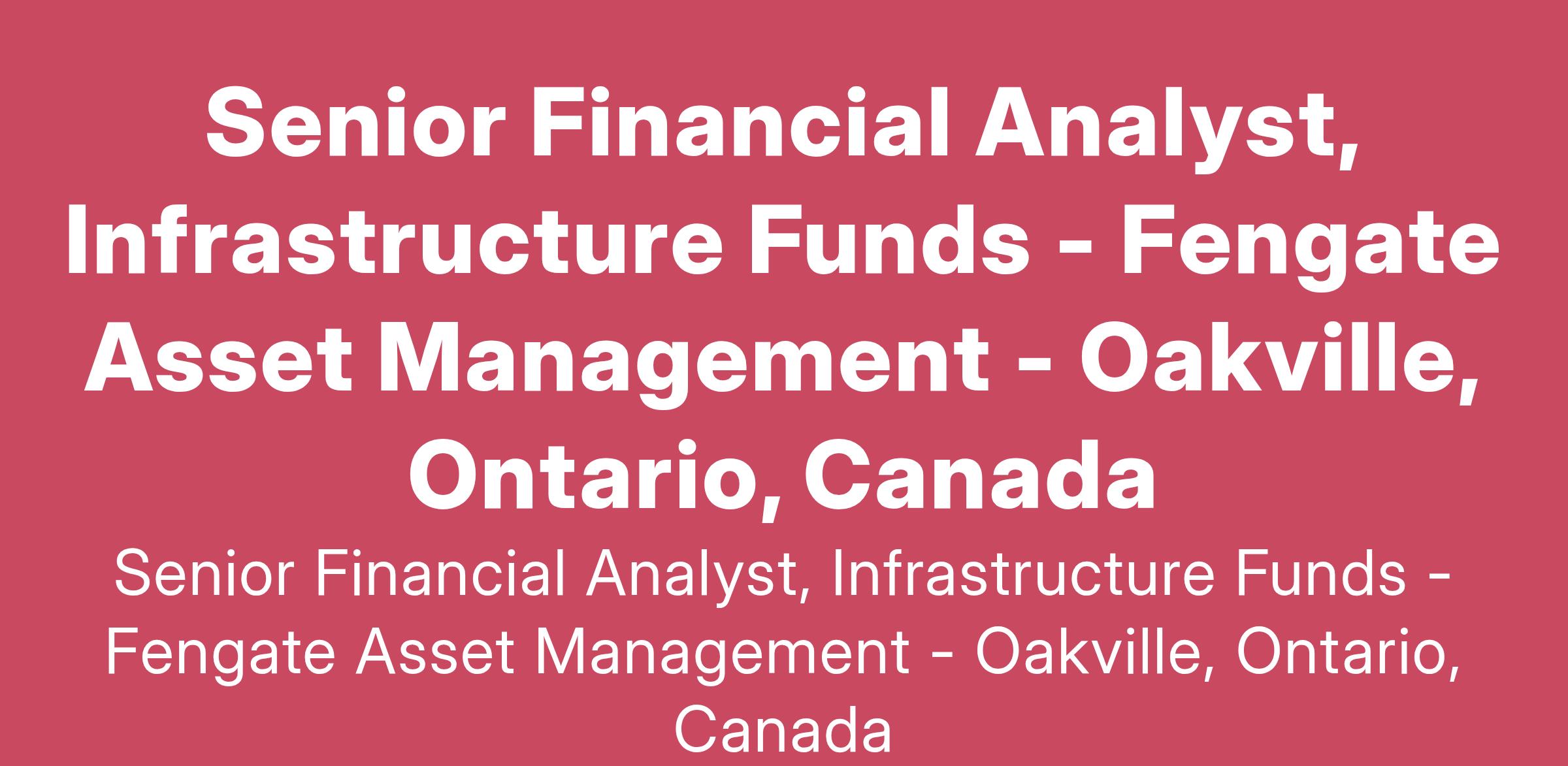 Fengate is seeking a Senior Financial Analyst to join the Infrastructure Funds finance team. Reporting to the Manager, Finance, Infrastructure Funds the individual will be responsible for investor and executive reporting, financial analysis and fund modelling, tax, treasury, compliance, and management of Fengate’s infrastructure funds. This role will interact closely with the executive team, the project and investments teams, the fund administrator, investor relations team, tax team and external investors. The role offers the opportunity to develop a deep understanding of infrastructure private equity funds, with focus on Fengate’s closed ended infrastructure funds.