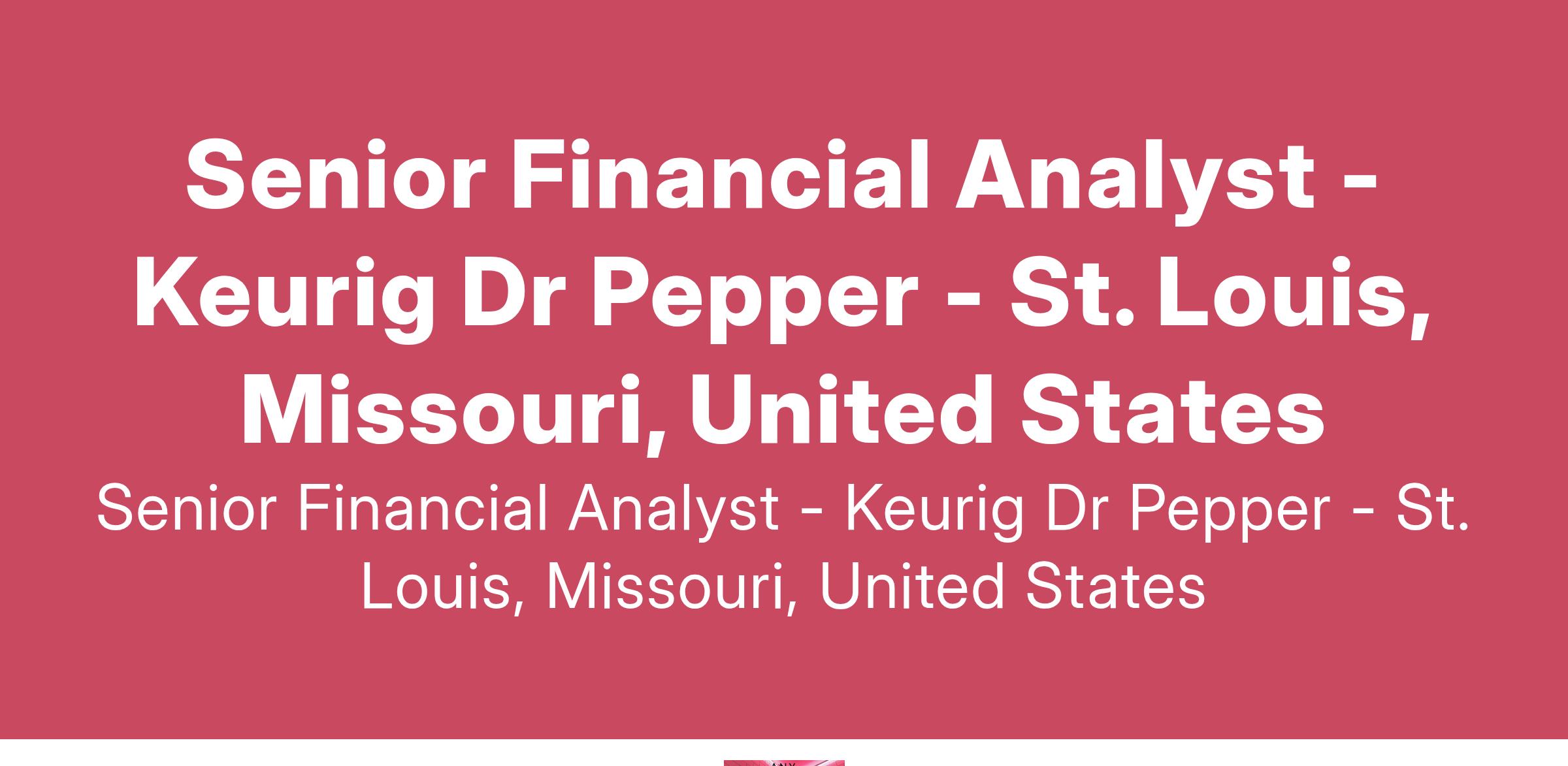 Senior Financial Analyst, Beverage Concentrate Manufacturing