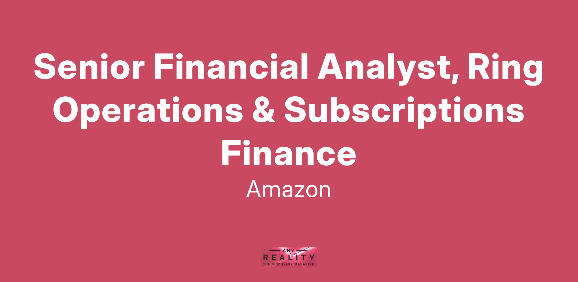 Ring is actively seeking a Senior Financial Analyst to provide financial support the company’s operations, subscriptions, and cost efficiency efforts. You will be responsible for working with a team that will partner with Ring subscriptions and operations teams to help them understand and manage their budgets and forecasts, quantify cost reduction efforts and proactively deliver cost related insights to relevant constituents. You will completely own automation initiatives and help the team enhance data management and processes for reporting and forecasting. You will also deliver insightful financial analyses and reports to internal and external Business Partners and work closely with the accounting function to ensure timely and accurate financial reporting. You will get as much responsibility as you demonstrate you can handle!
