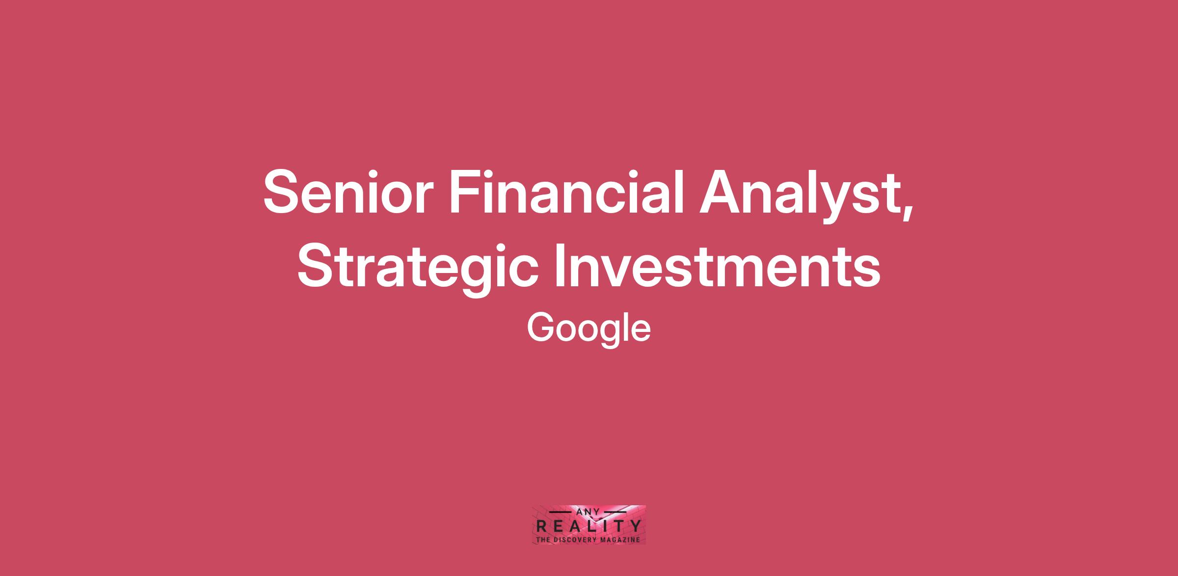 Financial Analysts ensure that Google makes sound financial decisions. As a Financial Analyst, your work, whether it's modeling business scenarios or tracking performance metrics, is used by our leaders to make strategic company decisions. Working on multiple projects at a time, you are focused on the details while finding creative ways to take on big picture challenges.
