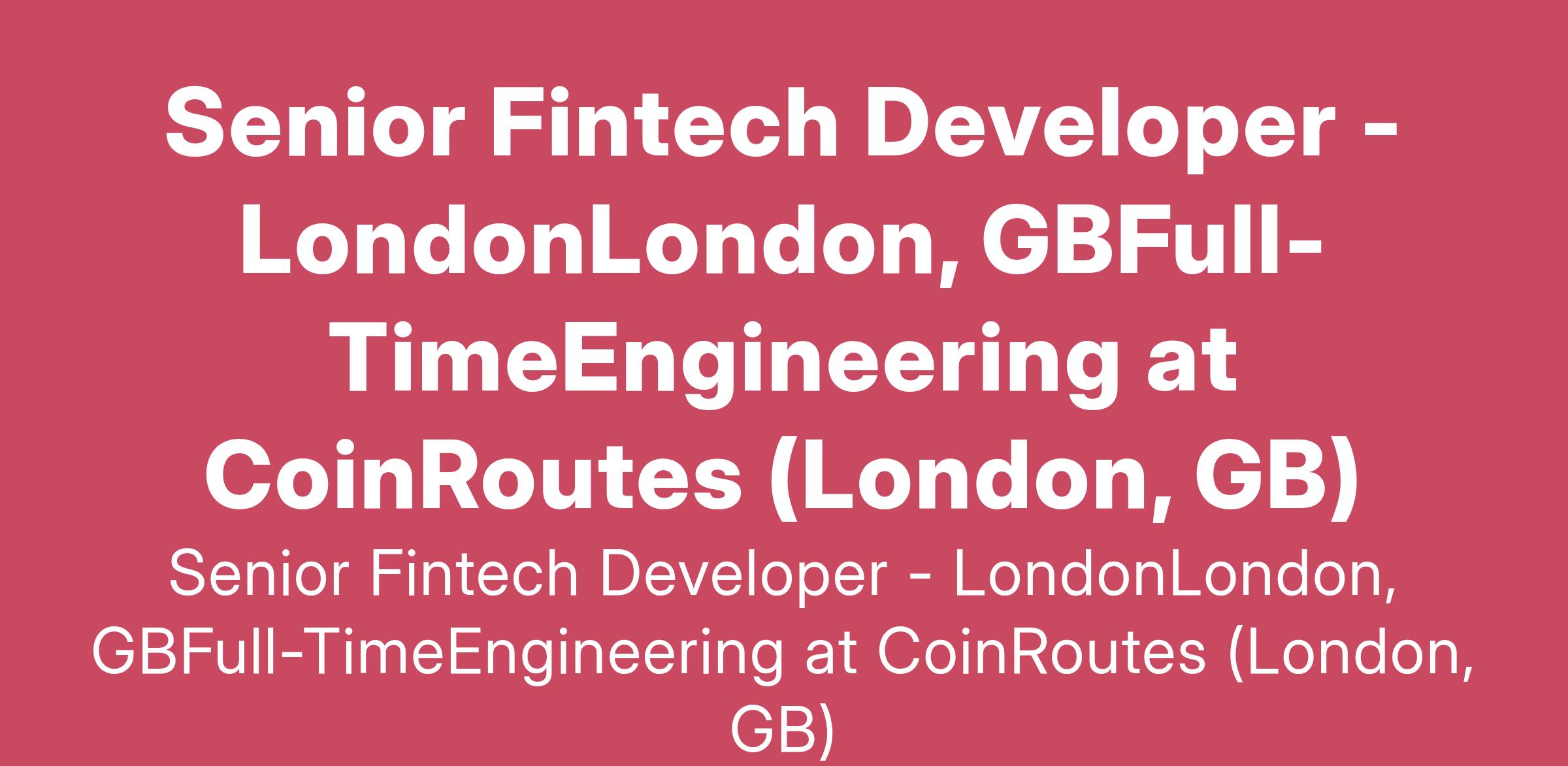 Senior Fintech Developer - LondonLondon, GBFull-TimeEngineering at CoinRoutes (London, GB)