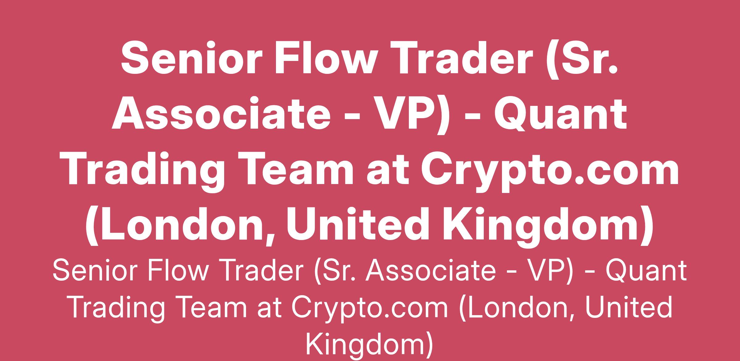 Senior Flow Trader (Sr. Associate - VP) - Quant Trading Team at Crypto.com (London, United Kingdom)