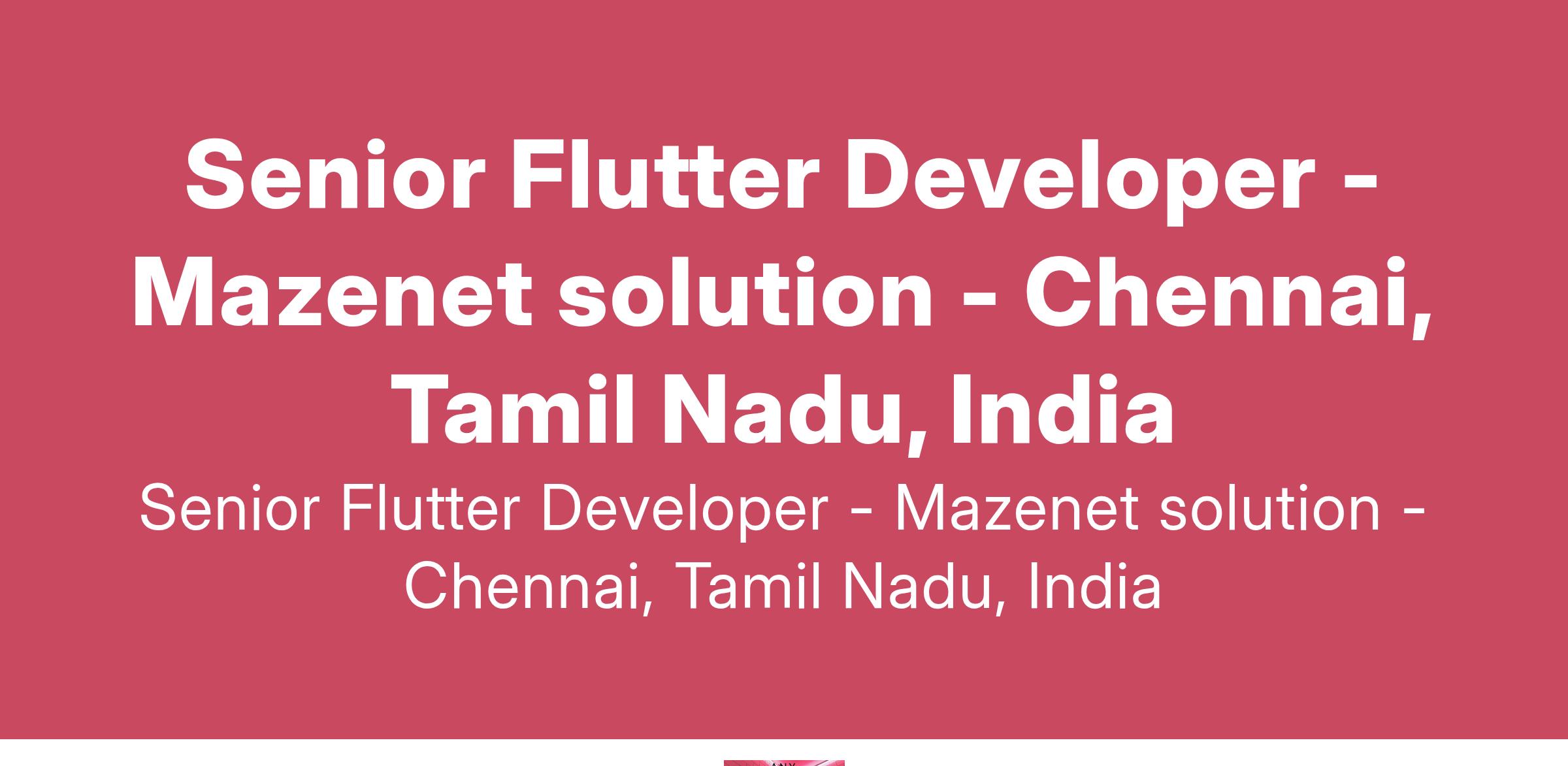 We are seeking a skilled Senior Flutter Developer to join our dynamic team at Mazenet solution. This is a mid-level, full-time position based in Chennai. The ideal candidate should have a maximum of 6 years of relevant work experience and a passion for developing high-quality mobile applications.