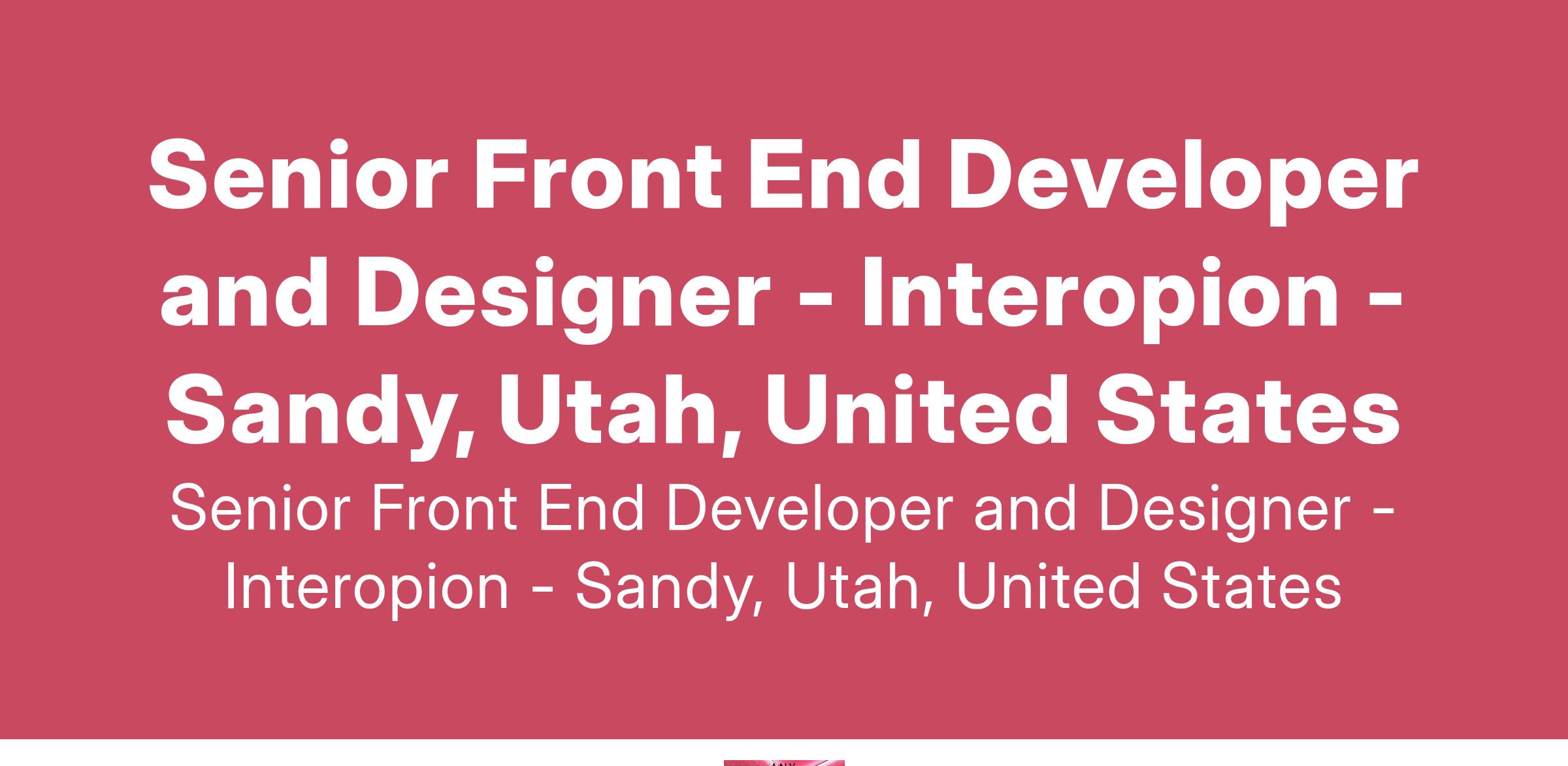 We are seeking a Senior Front End Developer who is passionate about designing and creating wonderful user experiences for progressive web applications. At Interopion, you will work with product managers, software engineers, healthcare workers, and clients to define, design, prototype, and build healthcare applications that improve the lives of people in our own community, across the country, and throughout the world.