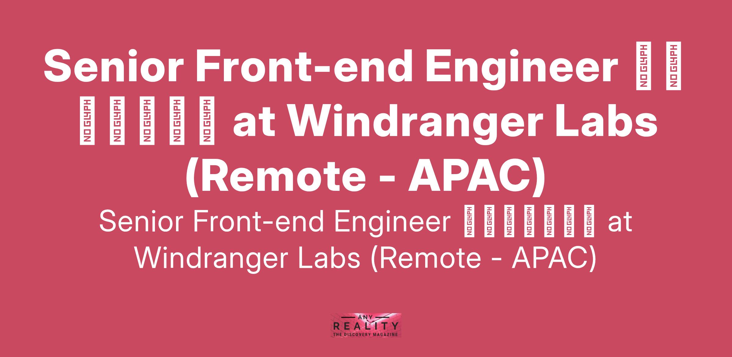 Senior Front-end Engineer 前端开发工程师 at Windranger Labs (Remote - APAC)