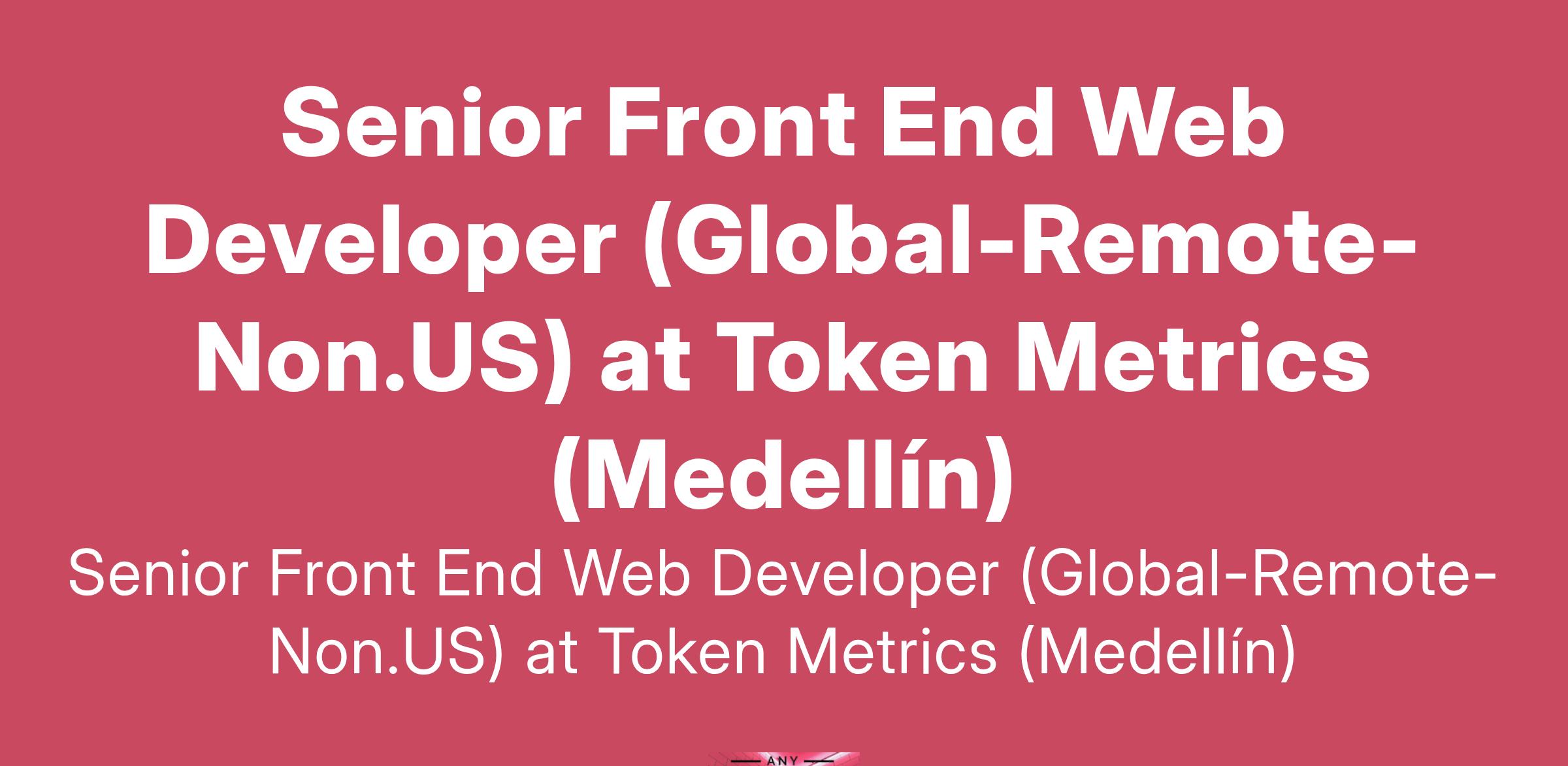 Senior Front End Web Developer (Global-Remote-Non.US) at Token Metrics (Medellín)