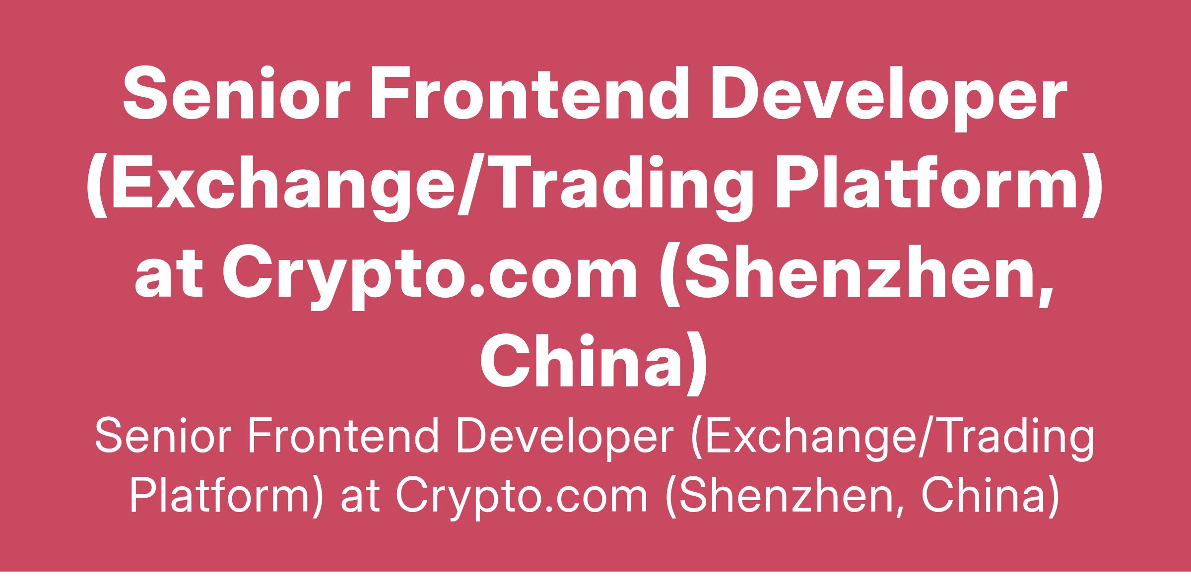 Senior Frontend Developer (Exchange/Trading Platform) at Crypto.com (Shenzhen, China)