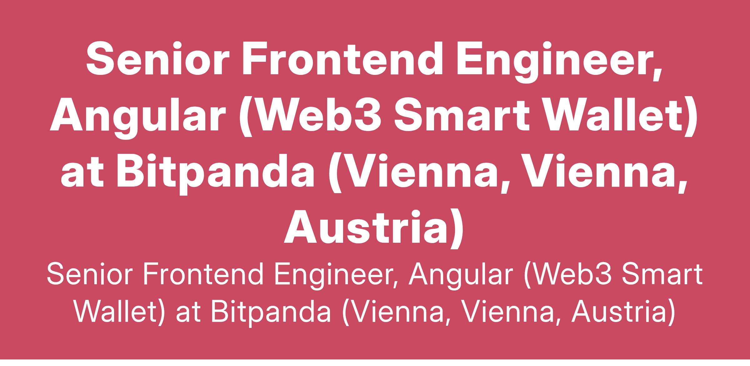 Senior Frontend Engineer, Angular (Web3 Smart Wallet) at Bitpanda (Vienna, Vienna, Austria)