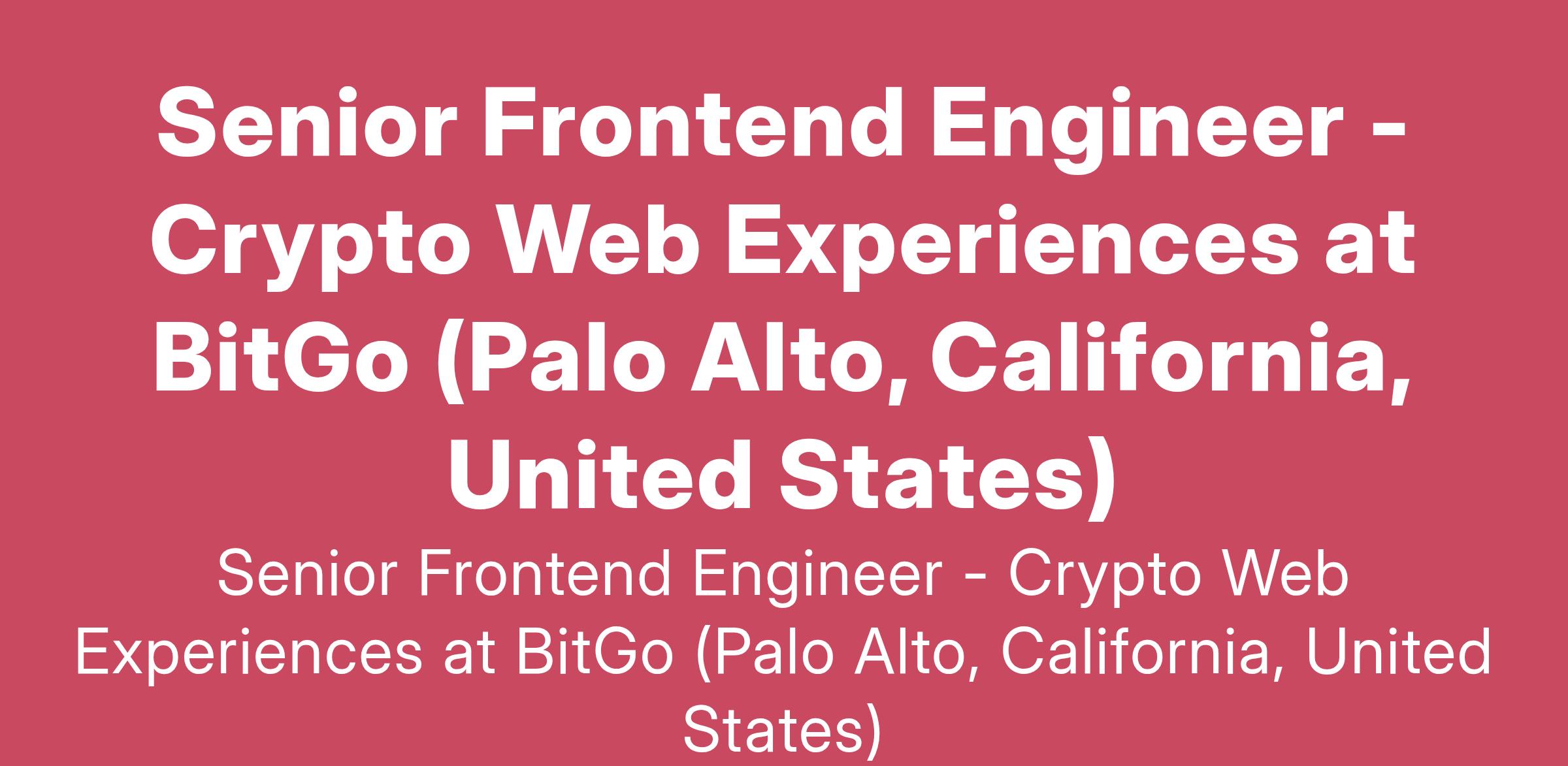 Senior Frontend Engineer - Crypto Web Experiences at BitGo (Palo Alto, California, United States)