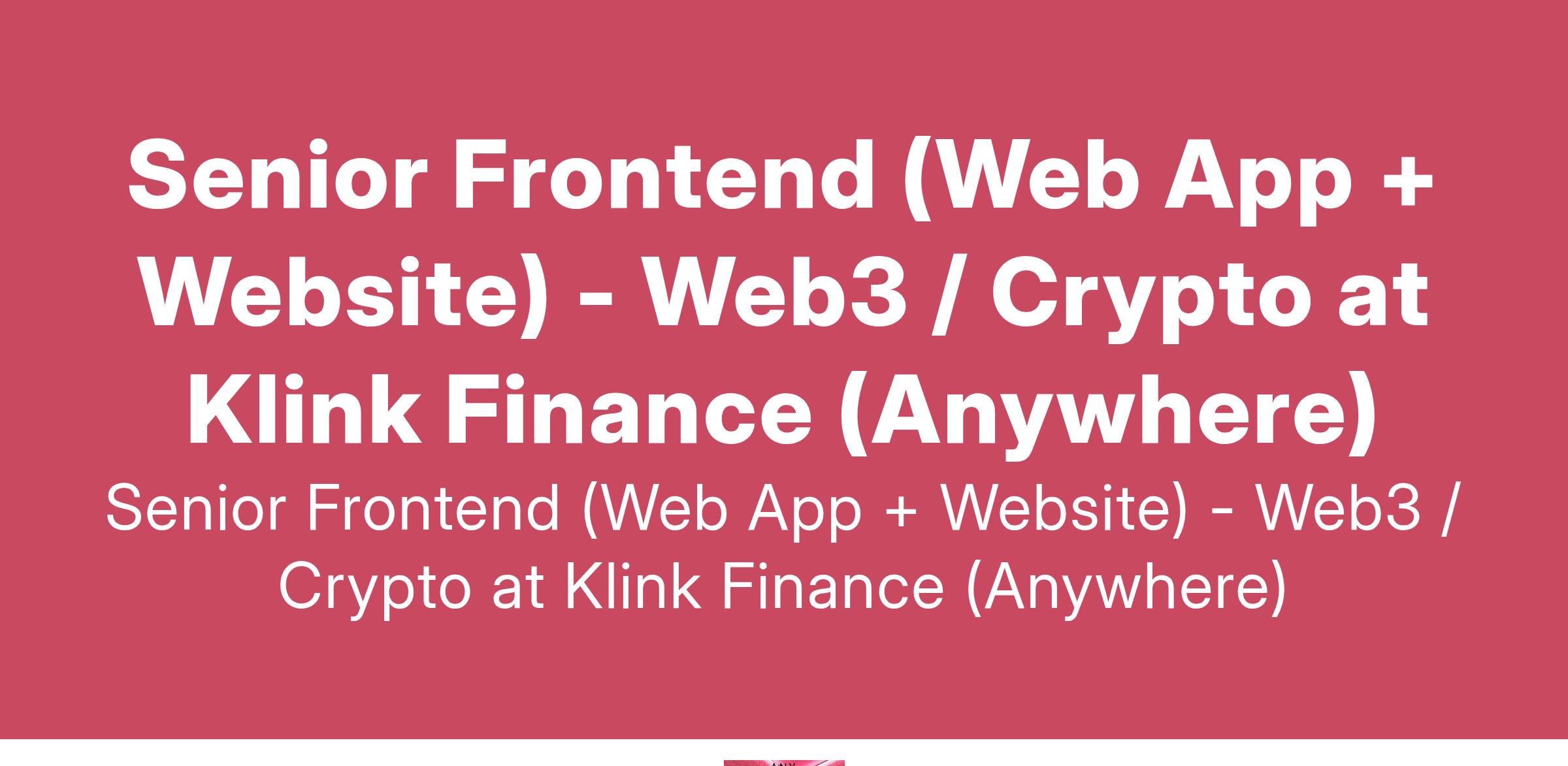 Senior Frontend (Web App + Website) - Web3 / Crypto at Klink Finance (Anywhere)