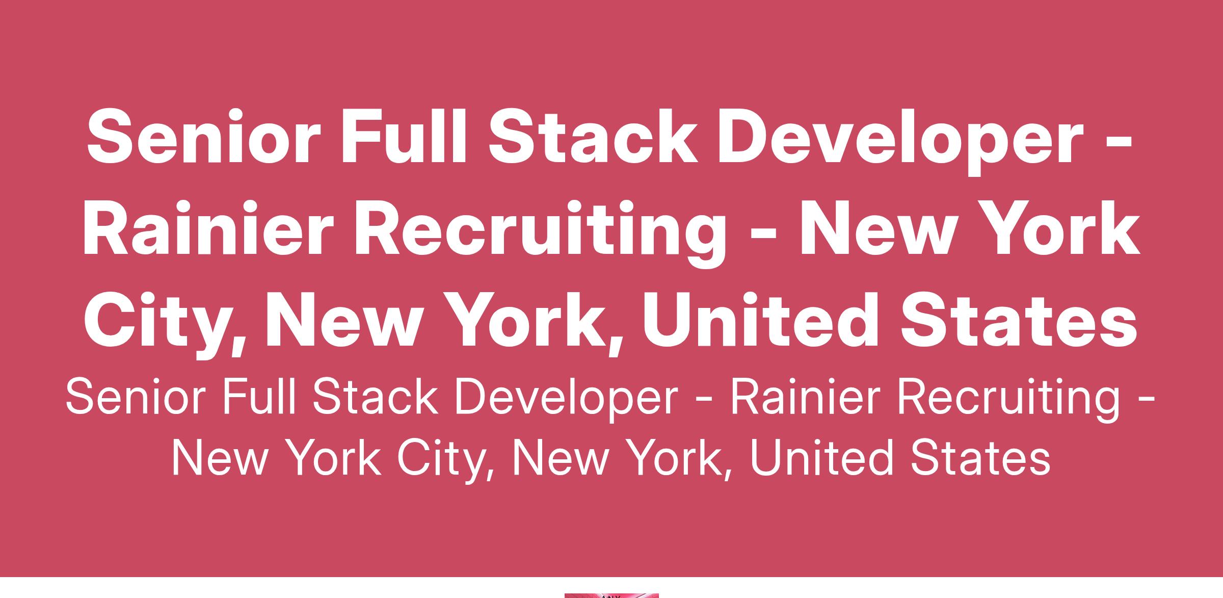 An exciting Senior Fullstack Developer position has opened due to growth. Rainier Recruiting has partnered with a VC backed NFT startup. Passive candidates who are employed and curious to hear are more than welcome to have a “no-commitment” conversation with our Recruiting team about why this could be an exciting career opportunity.