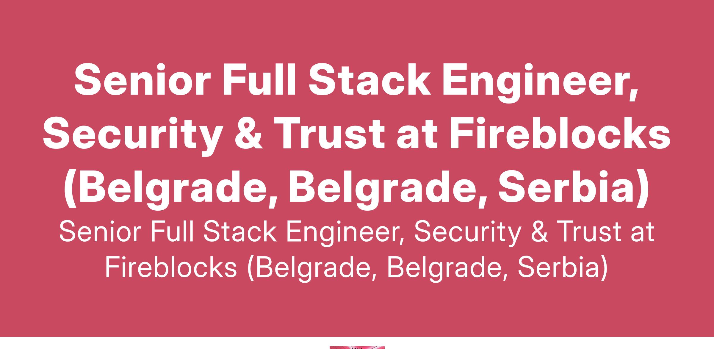Senior Full Stack Engineer, Security & Trust at Fireblocks (Belgrade, Belgrade, Serbia)
