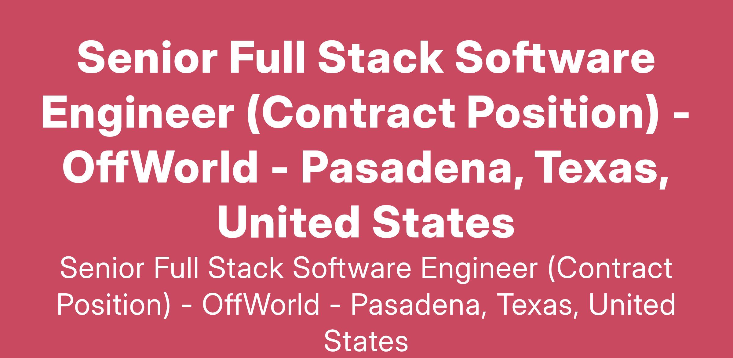 OffWorld is an Equal Opportunity / Affirmative Action employer committed to diversity in the workplace. All qualified applicants will receive consideration for employment without regard to race, color, religion, sex, sexual orientation, age, national origin, disability, protected veteran status, gender identity or any other factor protected by applicable federal, state or local laws.