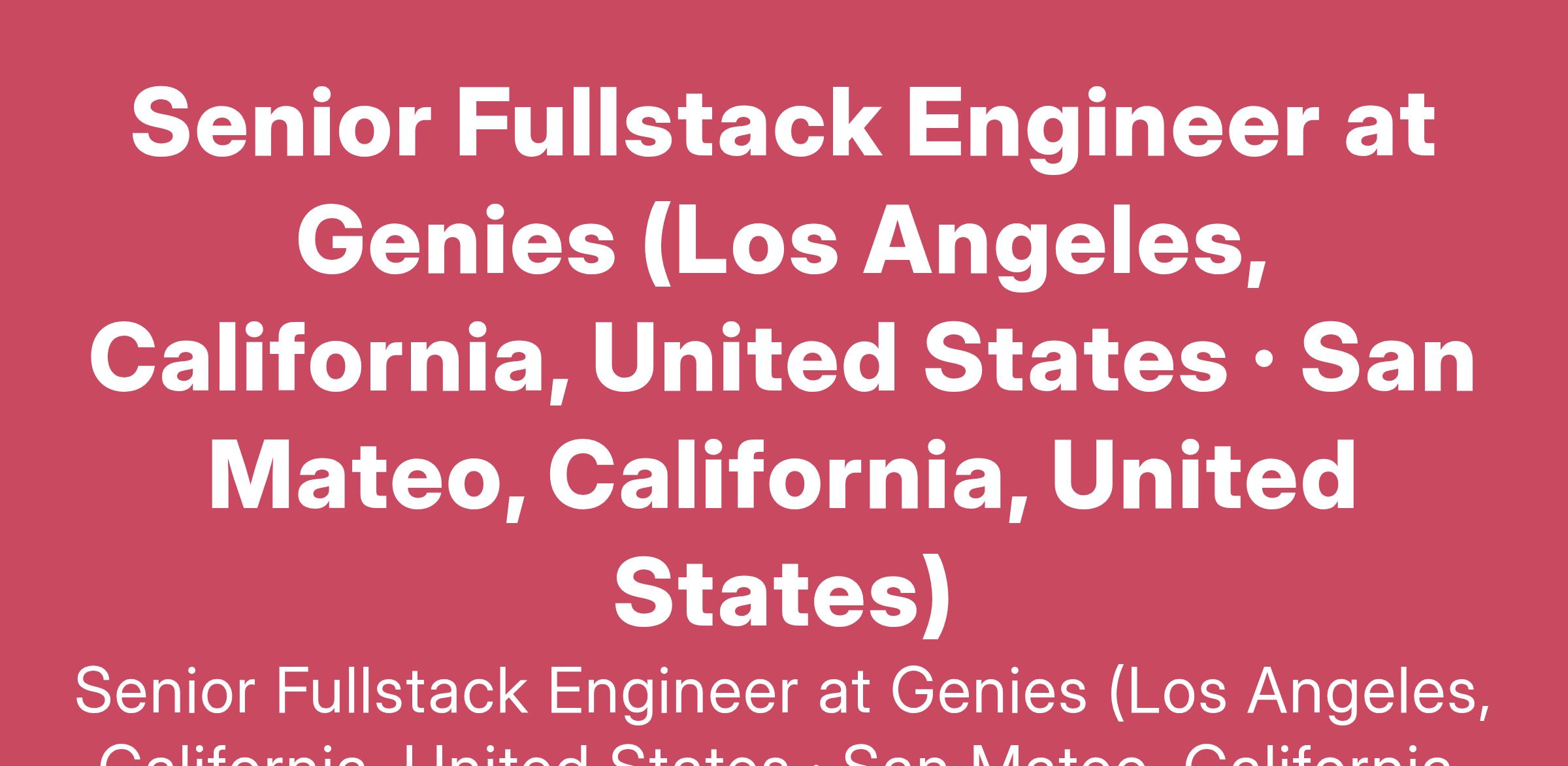 Senior Fullstack Engineer at Genies (Los Angeles, California, United States · San Mateo, California, United States)