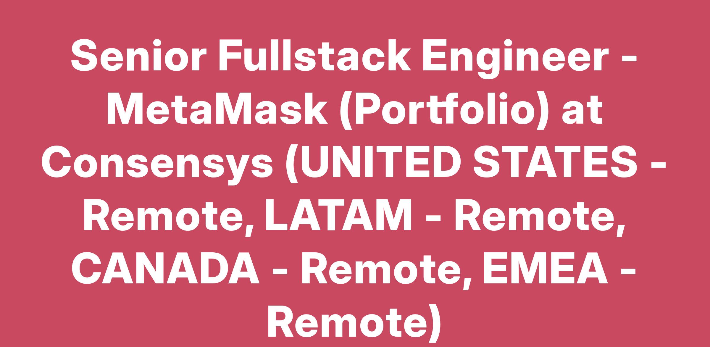 Senior Fullstack Engineer - Metamask (Portfolio) at Consensys (UNITED STATES - Remote, LATAM - Remote, CANADA - Remote, EMEA - Remote)