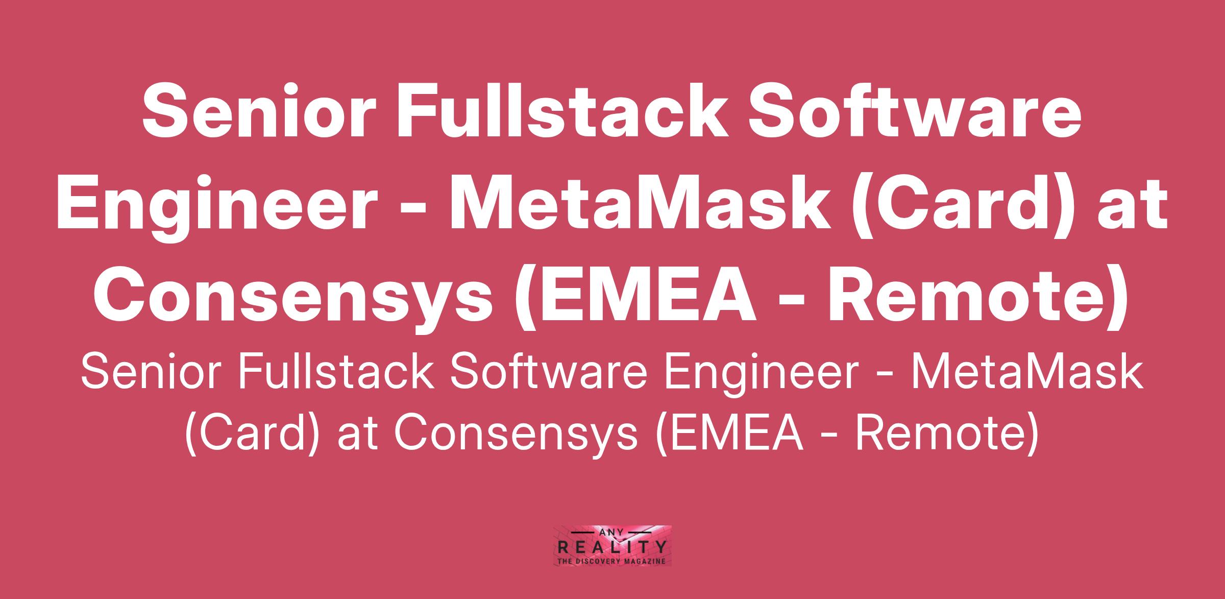 Senior Fullstack Software Engineer - MetaMask (Card) at Consensys (EMEA - Remote)