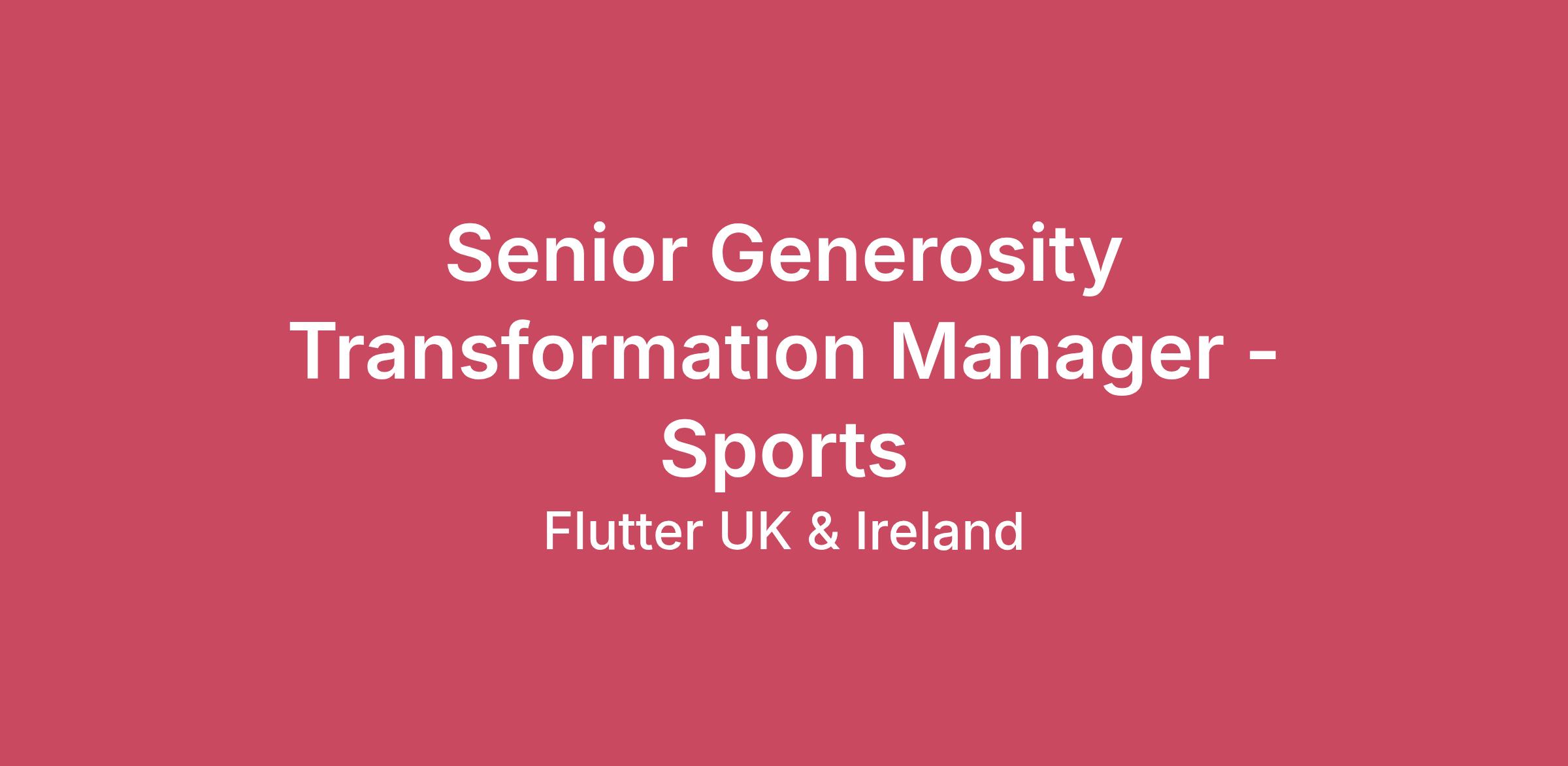Reporting into the Head of Generosity Transformation the Senior Generosity Transformation Manager – Sports is a key role in the Flutter UKI Generosity Transformation team with focus on delivering generosity innovation and capabilities for Flutter UK&I brands.