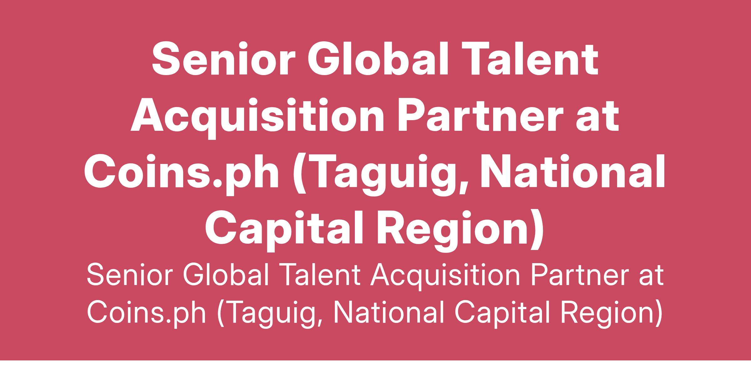 Senior Global Talent Acquisition Partner at Coins.ph (Taguig, National Capital Region)