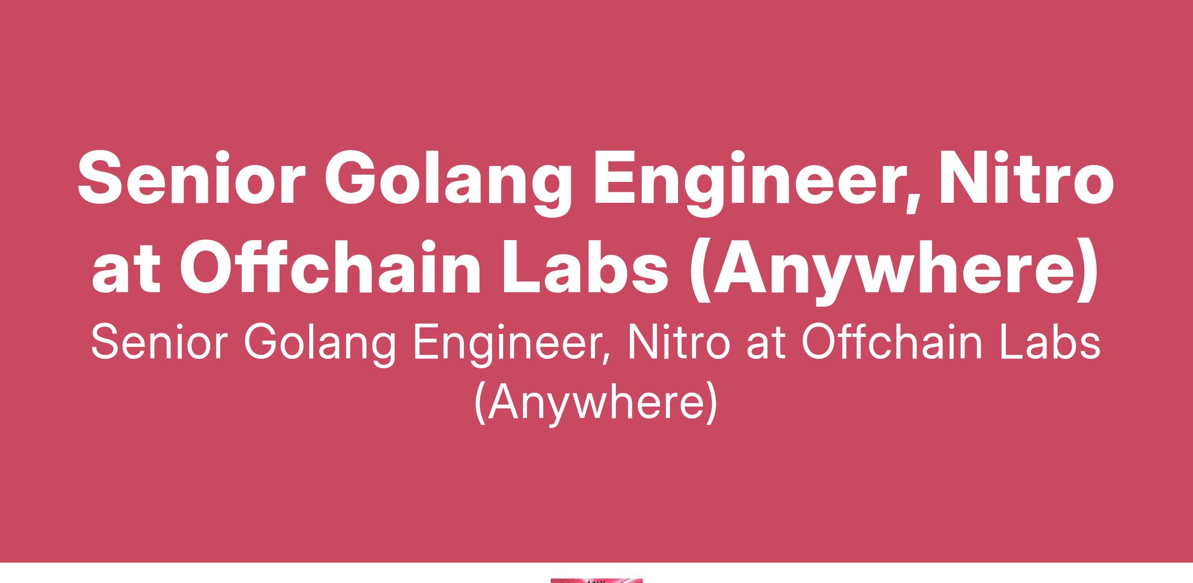 Senior Golang Engineer, Nitro at Offchain Labs (Anywhere)