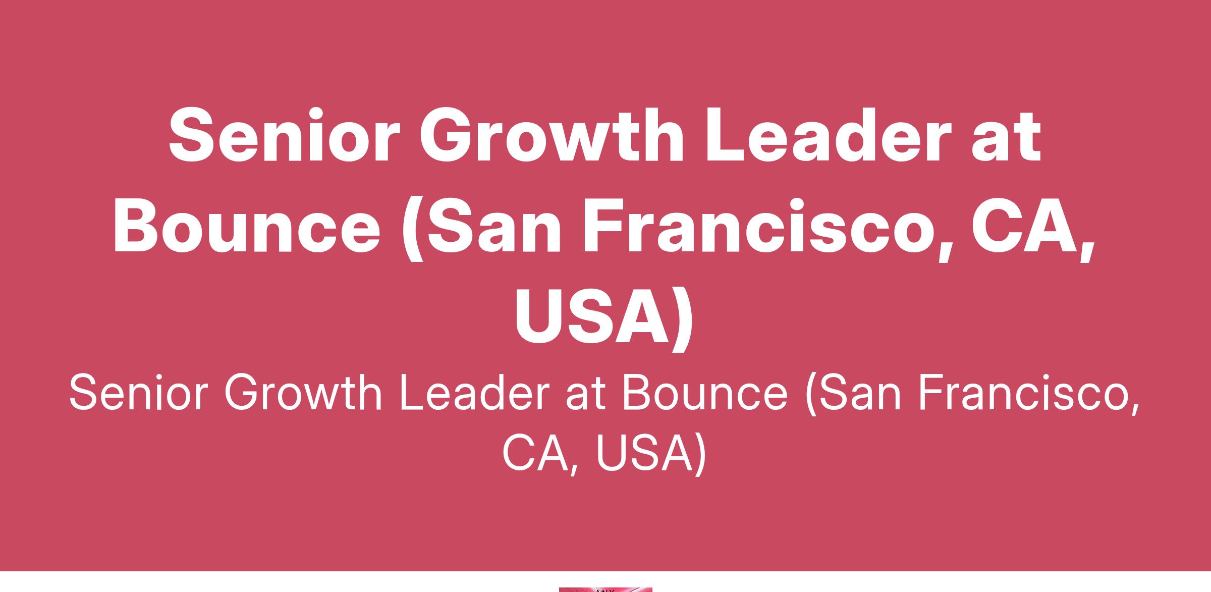 Senior Growth Leader at Bounce (San Francisco, CA, USA)