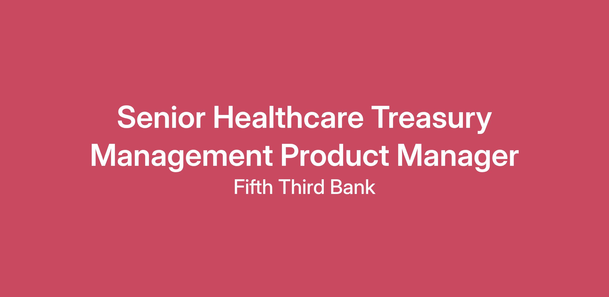 Make banking a Fifth Third better®We connect great people to great opportunities. Are you ready to take the next step? Discover a career in banking at Fifth Third Bank.GENERAL FUNCTION: Seeking a visionary Senior Healthcare Product Manager to lead the development of next-generation healthcare payment solutions within our Treasury Management group. This is not just a product role—it’s an opportunity to reshape how healthcare organizations manage payments and revenue cycles in a rapidly evolving financial ecosystem.ESSENTIAL DUTIES & RESPONSIBILITIES:Drive innovation by introducing cutting-edge capabilities, including AI, machine learning, and advanced analytics, to optimize payment workflows and revenue cycle management.Serve as a strategic connector between the banking industry and the healthcare fintech ecosystem, leveraging your network to identify partnerships, emerging trends, and disruptive opportunities.Champion solutions that simplify complex payer-provider interactions, improve interoperability, and deliver seamless payment experiences for healthcare organizations.Influence the future of healthcare payments by anticipating regulatory changes, market dynamics, and customer needs, ensuring our offerings remain ahead of the curve.Define and execute product strategy for healthcare payment solutions.Collaborate with internal teams and external stakeholders (payers, providers) to identify market needs.Manage the product lifecycle from ideation to launch and ongoing optimization.Drive sales for product(s) within designated product line.Develop and enhance products.Develop strategy plan and product plan to meet revenue and market share goals.Pricing, profitability, packaging, promotion and margin managementVendor selection and relations; contract negotiationsDevelop and distribute sales toolsDevelop customer education and customer focus programs for new and existing product initiatives.Act as liaison between several areas of the bank, including Sales, Operations, IT, Legal, Audit, Legal, and Risk.Identify risk associated with product lines and contribution to process development and management to minimize risk. Works under minimal supervision.MINIMUM KNOWLEDGE, SKILLS AND ABILITIES REQUIRED:Undergraduate degree in business or finance required. MBA or advanced degree preferred.7+ years experience in related healthcare product management, which includes product development, sales or operationsExperience working in matrix management and multi-site environmentsCollaboration and relationship management skills requiredUnderstanding of related current industry trends and issuesPriority management and time management skillsExtensive experience/ability to influence and negotiate with individuals outside span of controlExcellent interpersonal, written and verbal skills as individual interfaces with all levels of managementStrong analytical, financial and strategic skills#LI-TY1Senior Healthcare Treasury Management Product ManagerTotal Base Pay Range 94,500.00 - 203,200.00 USD AnnualAt Fifth Third, we understand the importance of recognizing our employees for the role they play in improving the lives of our customers, communities and each other. Our Total Rewards include comprehensive benefits and differentiated compensation offerings to give each employee the opportunity to be their best every day.The base salary for this position is reflective of the range of salary levels for all roles within this pay grade across the U.S. Individual salaries within this range will vary based on factors such as role, relevant skillset, relevant experience, education and geographic location. In addition to the base salary, this role is eligible to participate in an incentive compensation plan, with any such payment based upon company, line of business and/or individual performance.Our extensive benefits programs are designed to support the individual needs of our employees and their families, encompassing physical, financial, emotional and social well-being. You can learn more about those programs on our 53.com Careers page at: https://www.53.com/content/fifth-third/en/careers/benefits.html or by consulting with your talent acquisition partner. LOCATION -- Cincinnati, Ohio 45202Attention search firms and staffing agencies: do not submit unsolicited resumes for this posting. Fifth Third does not accept resumes from any agency that does not have an active agreement with Fifth Third. Any unsolicited resumes – no matter how they are submitted – will be considered the property of Fifth Third and Fifth Third will not be responsible for any associated fee.Fifth Third Bank, National Association is proud to have an engaged and inclusive culture and to promote and ensure equal employment opportunity in all employment decisions regardless of race, color, gender, national origin, religion, age, disability, sexual orientation, gender identity, military status, veteran status or any other legally protected status.