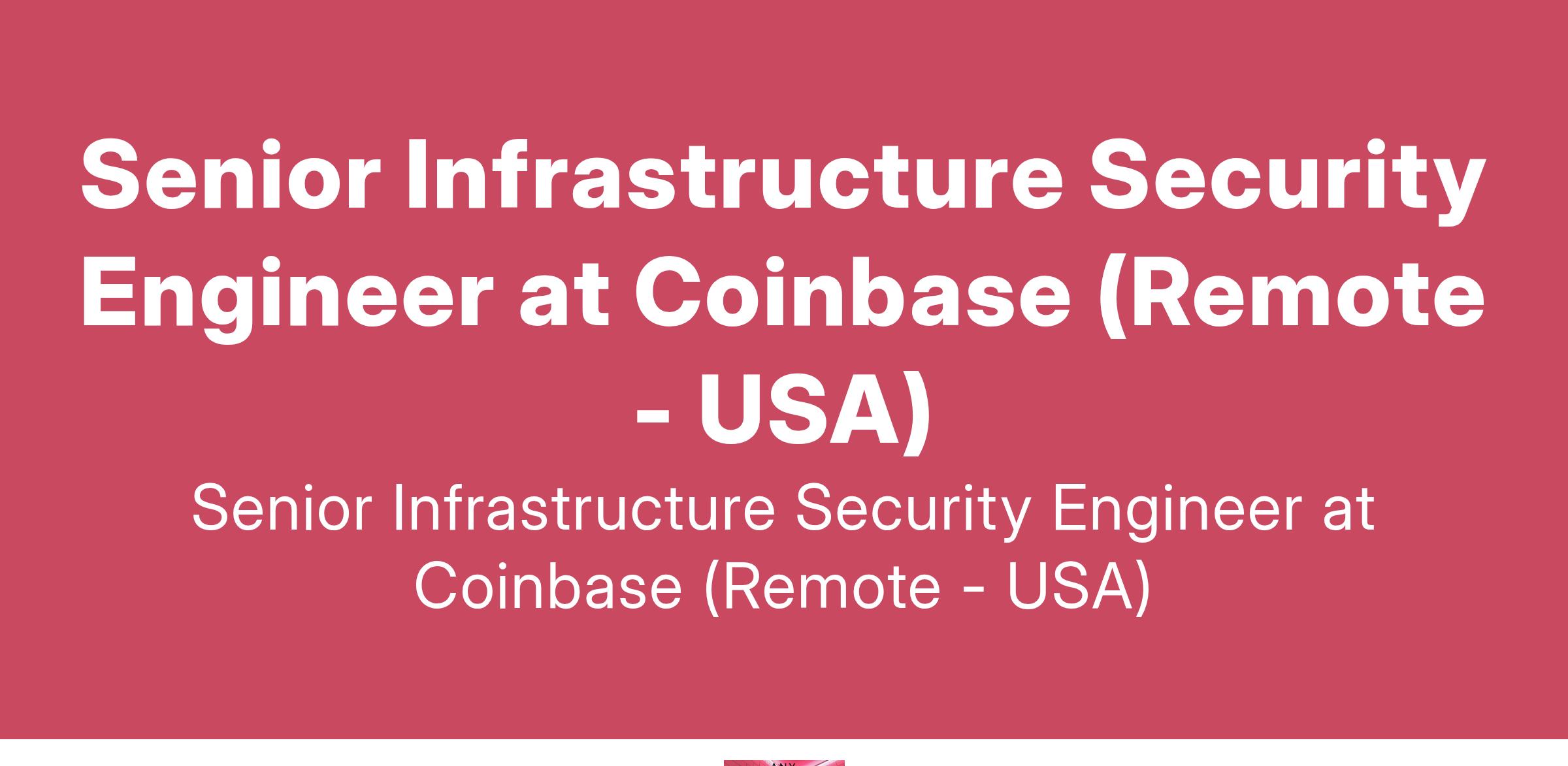 Senior Infrastructure Security Engineer at Coinbase (Remote - USA)