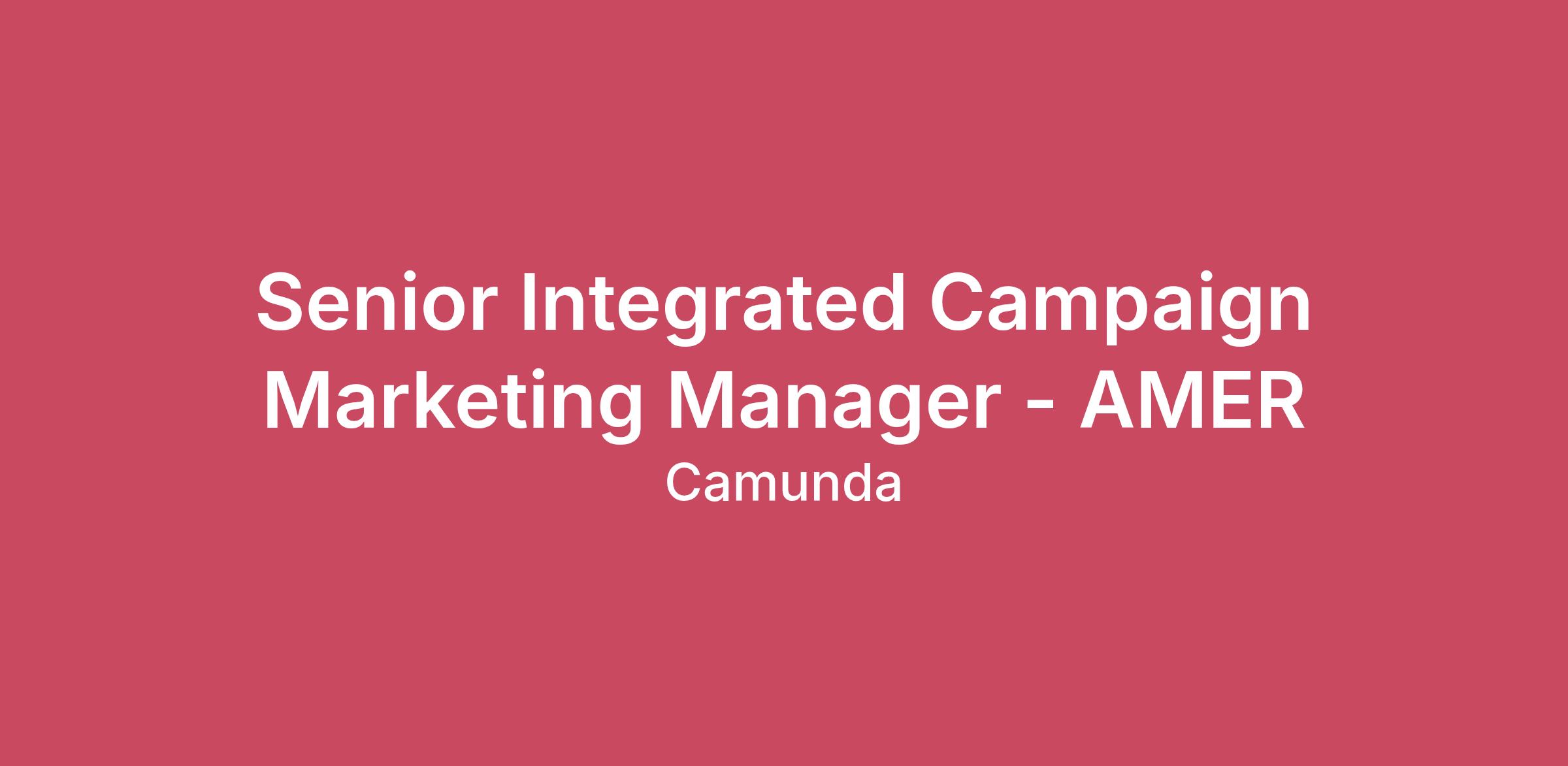 Join us for our upcoming webinar, How to Be a Leader, Not Just a Manager. A practical session with a powerhouse panel on leading modern, remote teams.Register here!Camunda is the leader in enterprise agentic automation, orchestrating complex business processes, including high-value knowledge work, across agents, people, and systems. By creating production-ready, enterprise-grade agents with built-in governance, Camunda uniquely delivers trusted AI agents for business-critical processes. Over 700 leading innovators like Atlassian, ING, and Vodafone, rely on Camunda to slash time-to-value from months to days, boost operational efficiency, and elevate customer experiences. Camunda was named a Visionary in the inaugural 2025 Gartner® Magic Quadrant™ for Business Orchestration and Automation Technologies (BOAT).As a fully remote, global company, we’re rewriting the rules of modern business. Named GP Bullhound’s 2024 Top 100 Next Unicorn list, certified as a Great Place to Work, and recognized by Flexa for true flexibility, we’re growing fast and looking for top talent to join our team. If you’re excited to do meaningful work and make real impact, keep reading, this role could be the one you’ve been waiting for.About the Role:The Senior Integrated Campaign Marketing Manager is responsible for developing, executing, and monitoring integrated marketing campaigns to drive global B2B pipeline. Key duties include creating marketing strategies, managing campaign budgets and schedules, cross-functional leadership and analyzing campaign performance to achieve revenue goals.What you'll be doing:Develop and execute campaigns: Design and manage the implementation of B2B marketing campaigns across various channels like digital, email, social, and events to meet sales and pipeline goals.Strategize: Create overall campaign strategies, including the campaign calendar, messaging, and content.Collaborate: Work closely with sales, product, and other internal teams to ensure marketing efforts are aligned with business objectives.Analyze performance: Track, analyze, and report on campaign performance to measure ROI and identify areas for improvement.Manage resources: Oversee campaign budgets, production schedules, and ensure timely, on-budget completion.Content coordination: Develop creative briefs and work with internal and external partners to produce marketing content.Lead generation: Implement demand and lead generation strategies to fill the sales funnel.What you bring:Experience: Minimum 3-4 years of experience in B2B marketing with a track record of successful campaigns.Education: Bachelor's degree in Marketing, Business, Communications, or a related field is typically required.Program Management skills - highly organized and detail oriented to cross-functionally align and lead teamStrategic thinking: Strong understanding of B2B sales funnels, demand generation, and lead conversion principles.Digital marketing: Hands-on experience with digital channels such as SEM, display, social, and email.Communication: Excellent written and verbal communication skills for creating compelling content and working with cross-functional teams.Analytical skills: Proficiency in data analysis, including A/B and multivariate testing, for campaign optimization.This role is an existing vacancy#LI-JS1 #LI-DNIWhat We Have to Offer:CompensationWe offer competitive, fair, and transparent compensation. Salary ranges are location-based, with Standard and Major markets (global tech hubs) reflecting local competition.The Annual Total Target Cash (base salary + 100% variable target, where applicable) shown below spans from the minimum in a Standard market to the maximum in a Major market. Final offers depend on skills, experience, and location, and we typically hire in the first half of the range to allow room for growth:United States: $131,300.00 to $211,600.00United Kingdom: £82,400.00 to £135,600.00Singapore: S$163,000.00 to S$244,500.00If you’re based elsewhere, you’ll be hired via Remote.com (our global employer partner), and your Talent Acquisition Partner will provide a personalized Total Rewards Calculator after your first interview.Equity: We also offer equity (where applicable) through our Virtual Stock Option Plan (VSOP).Benefits & PerksWe invest in your wellbeing, growth, and ability to connect, along with perks that support you no matter where you’re based. Our benefits are globally designed and locally delivered where applicable.Remote & Flexible: Work from anywhere with the setup that suits you, home office budget, co-working space support, and flexible time off to recharge when you need it.In Person Connection: We invest in meaningful face time through our Annual Kickoff (Vienna in 2025, Madrid in 2026!), team offsites, and Camundi Connection Budgets, including contributing to meetups while travelling,, and local gatherings with fellow Camundi.Health & Wellbeing: Access locally tailored healthcare, Modern Health for global mental wellbeing, and our Live Well Lifestyle Spending Account (LSA), a flexible, global benefit that puts you in control of your whole life, not just work, from: staying active, to caring for family, exploring personal passions, meaningful experiences, and investing in your financial wellbeing. The Live Well program launches in 2026 and scales to €1,000 annually from 2027.Financial Security: Retirement and pension plans (often with company contributions), plus life and disability insurance where relevant.Professional Growth: Up to $/€/£1,000 per year for self-driven learning: courses, certifications, books, you decide!More of what we offer globally & in your country can be found here.”Everyone is welcome at Camunda” — it’s a celebrated component of our culture. We strive to create an inclusive environment that empowers our people. At Camunda, we honour diverse cultures and backgrounds and are proud to be an equal opportunity employer. All qualified applicants will rece