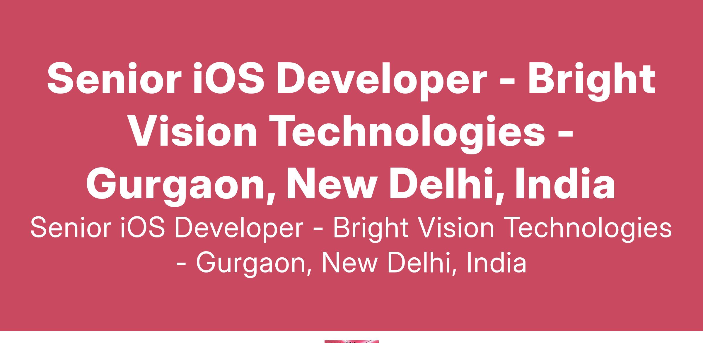 Bright Vision Technologies has an immediate Full-time opportunity for Senior iOS Developer.Job Role: Senior iOS Developer Bright Vision Technologies