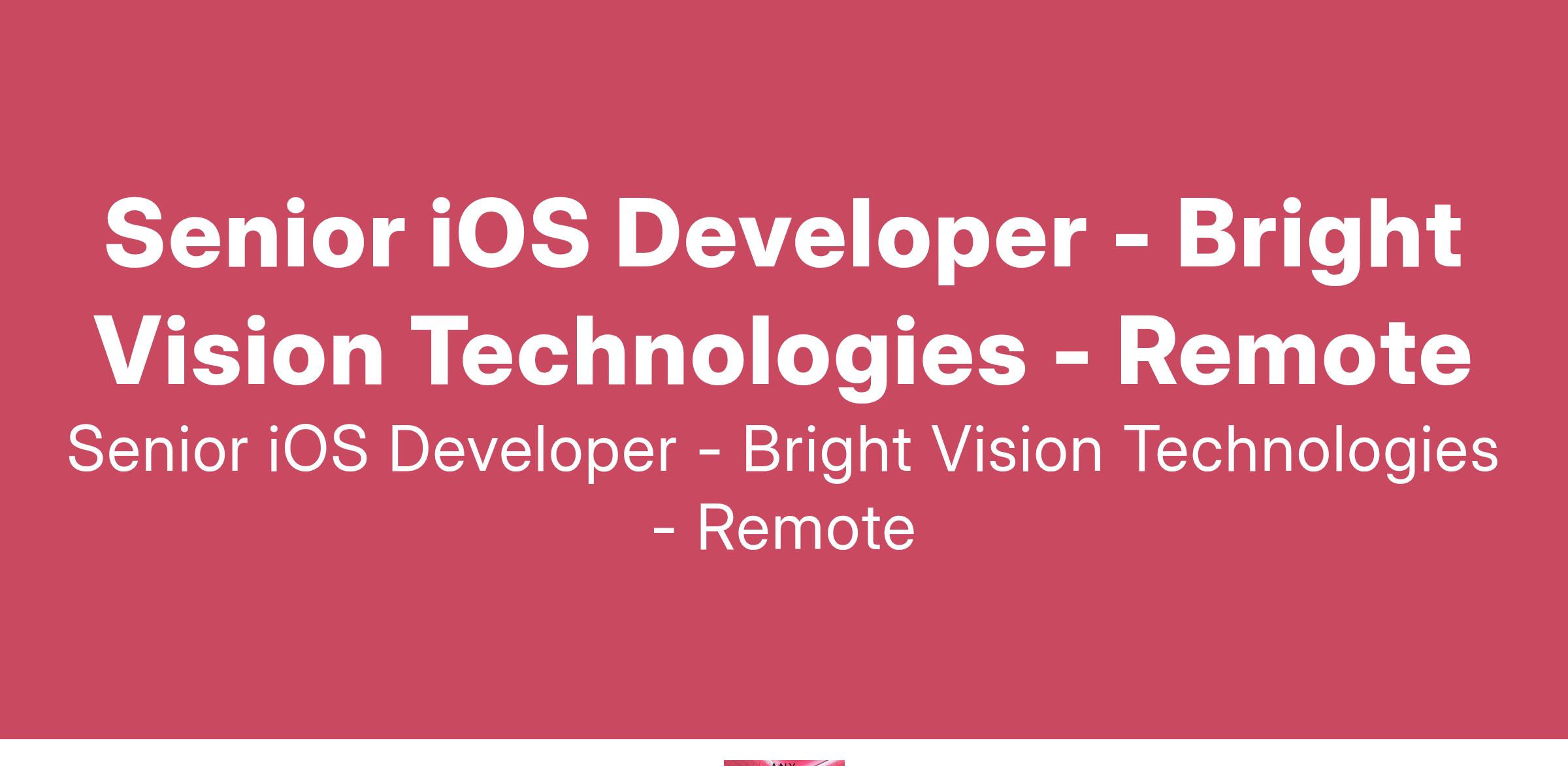 Bright Vision Technologies has an immediate Full-time opportunity for Senior iOS Developer.