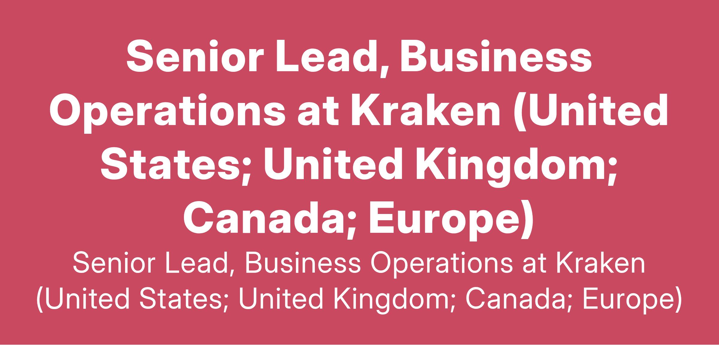 Senior Lead, Business Operations at Kraken (United States; United Kingdom; Canada; Europe)